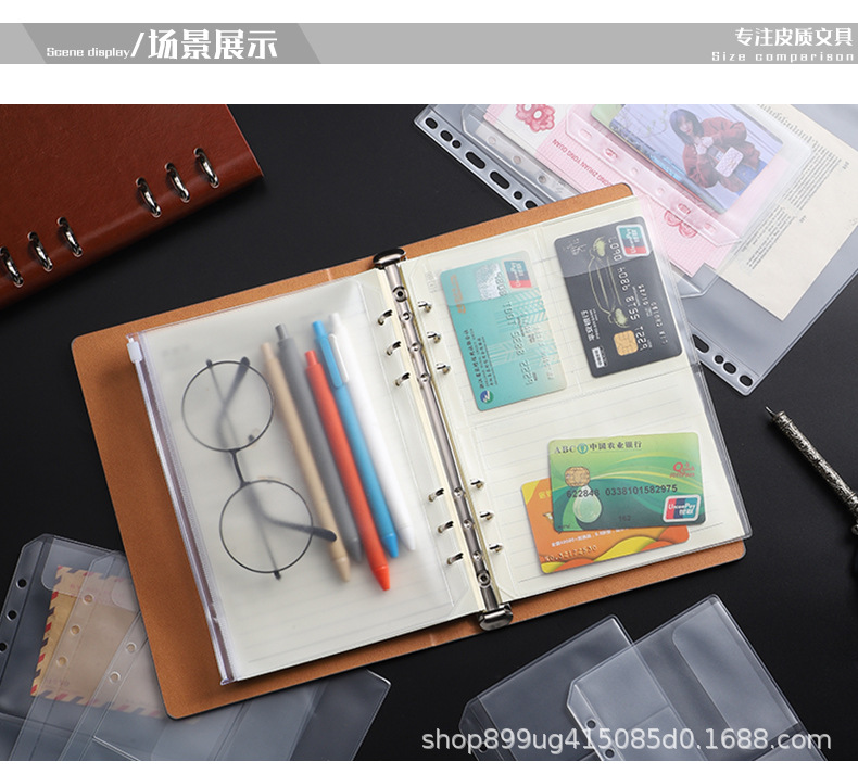 PVC 투명 가방 A6 느슨한 잎 지퍼 가방 A5 느슨한 잎 6 구멍 저장 정보 가방 명함 책 A7 느슨한 잎 가방스토어 가기