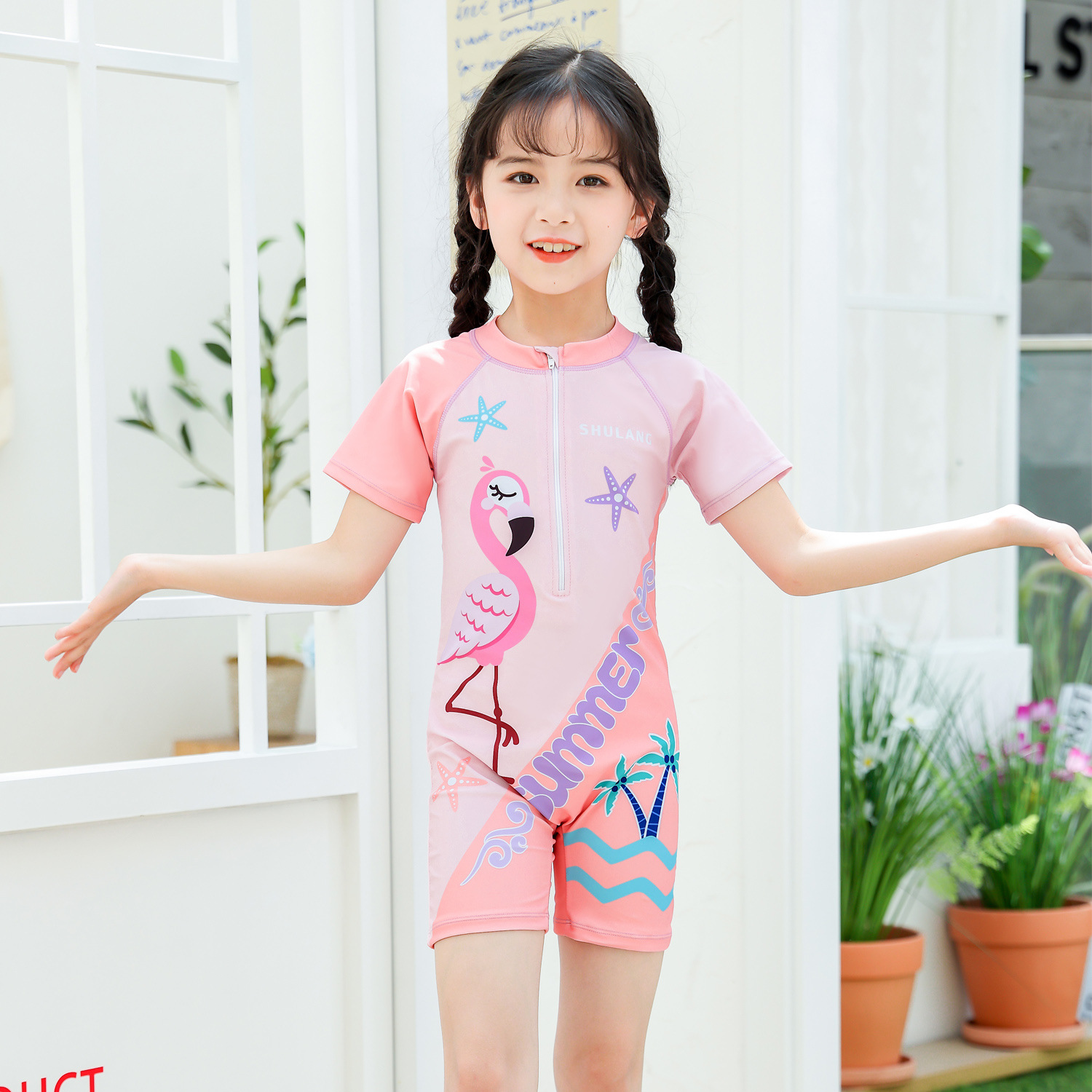 어린이 수영복 소녀 원피스 빠른 건조 자외선 차단제 중형 및 대형 어린이 수영복 어린이 및 소녀 한국식 온천 아기 수영복
