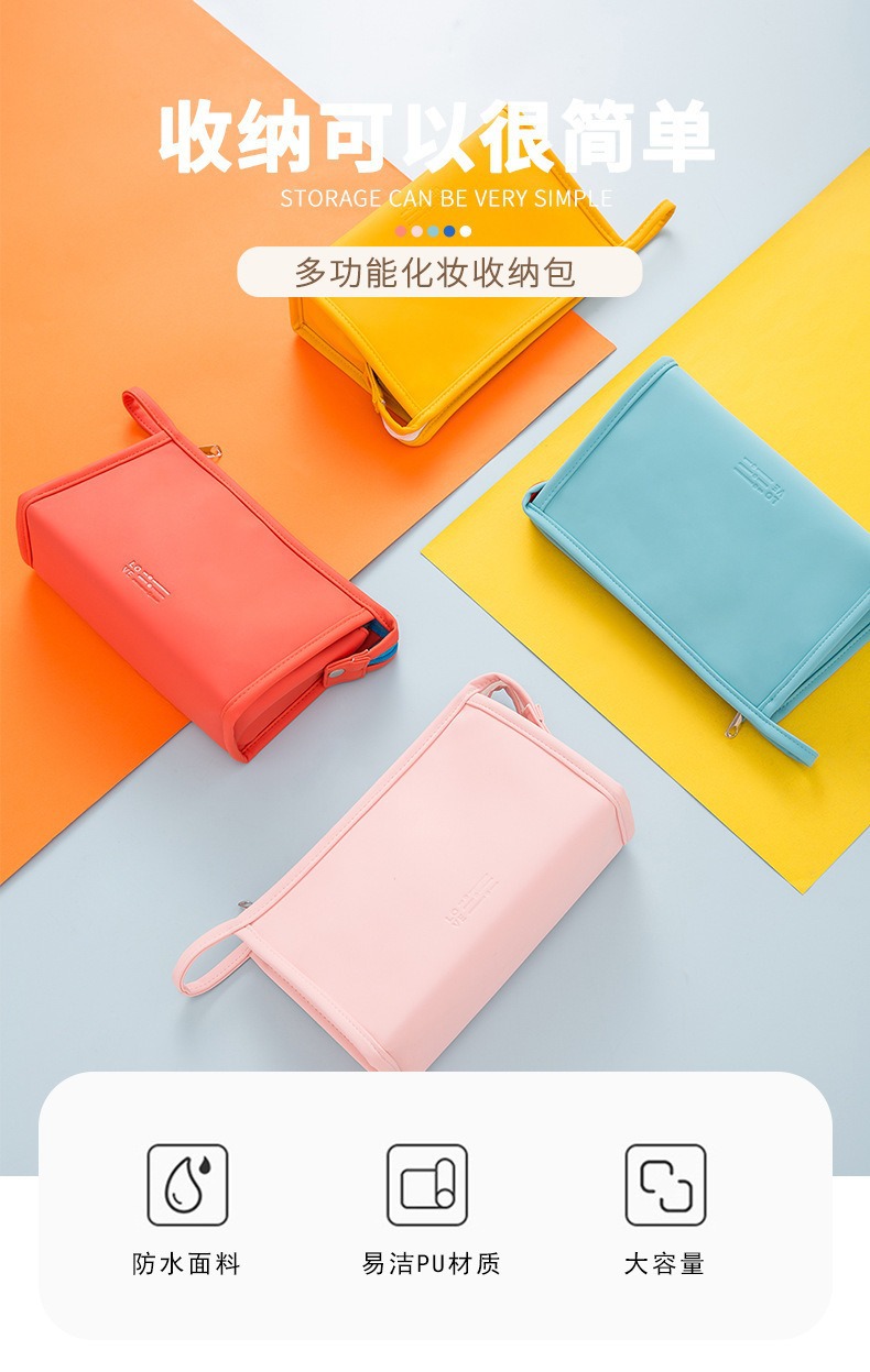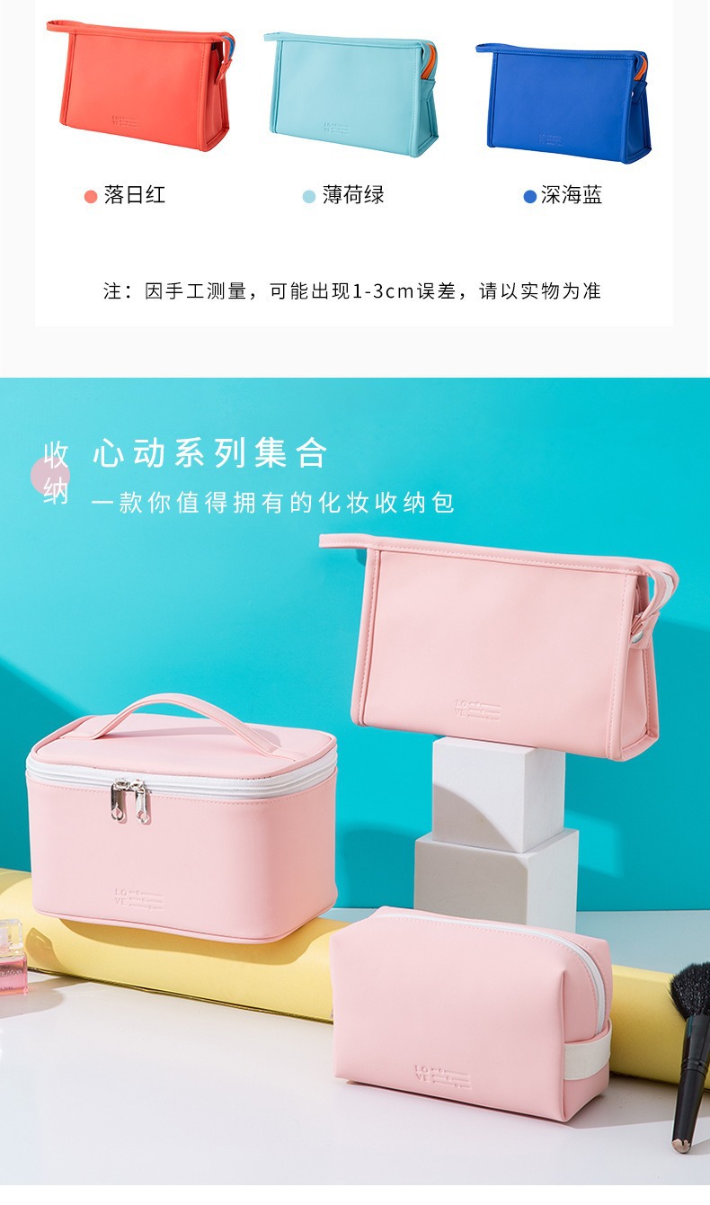 3 피스 PU 방수 화장품 가방 대용량 여행 휴대용 화장품 보관 가방 작은 사각형 가방 고급 세척 가방