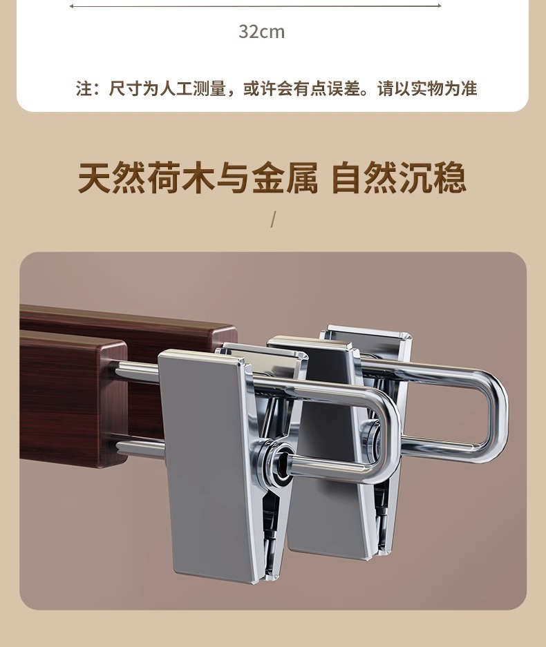 • 라운드 바 바지 클립-호두 색상 [너도밤 나무 철 고무 패드 미끄럼 방지]]