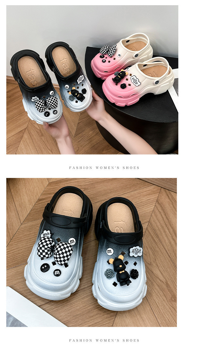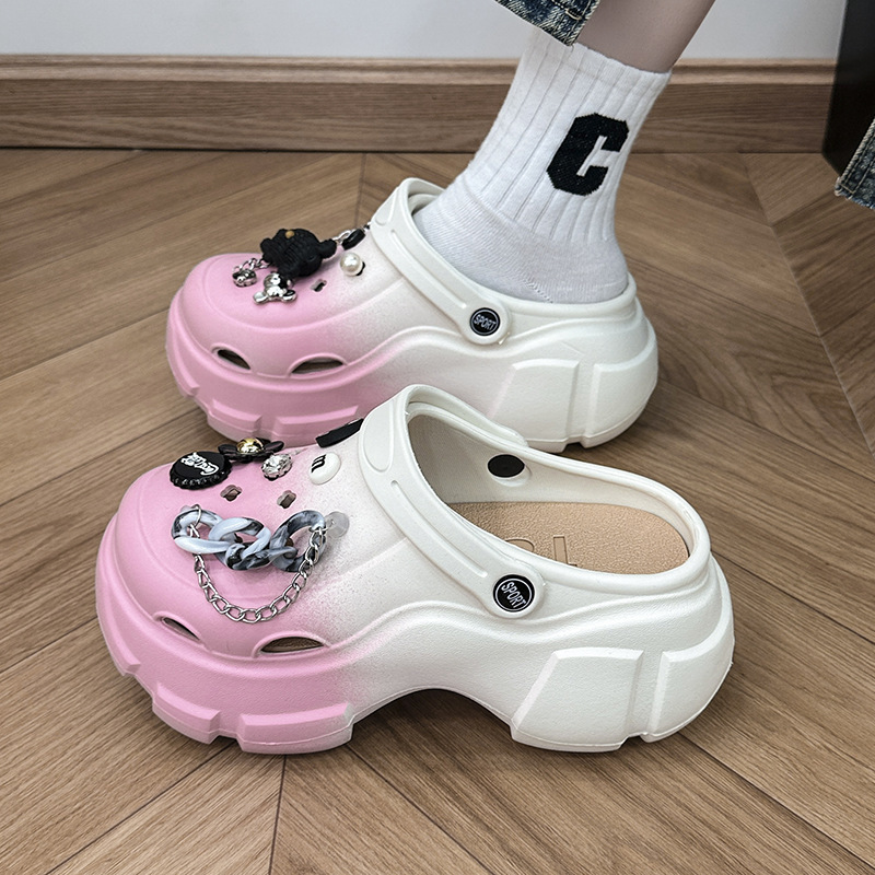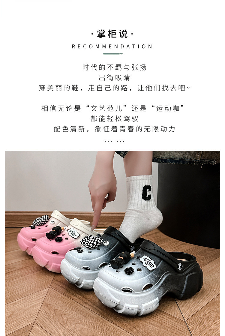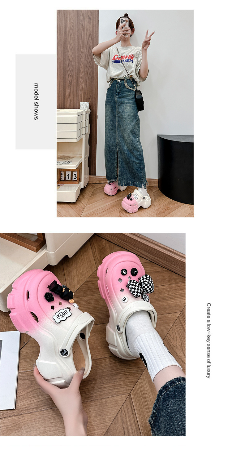 2024 동굴 신발 여성 여름 옷 한국식 높이 증가 두꺼운 밑창 미끄럼 방지 패션 인터넷-유명한 귀여운 비치 샌들