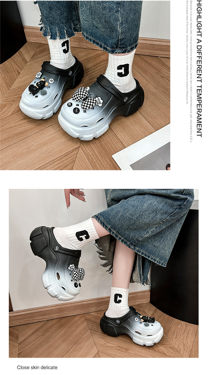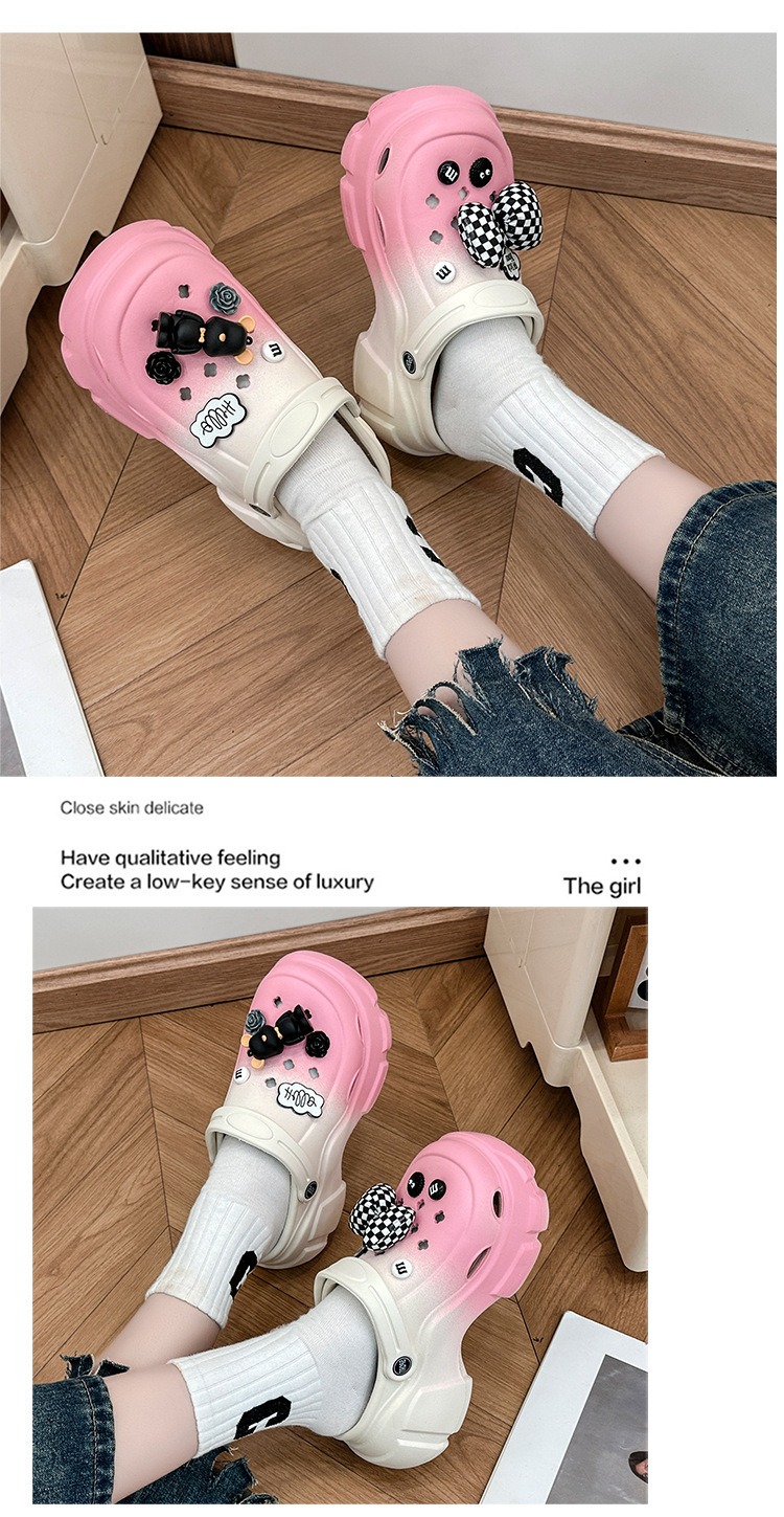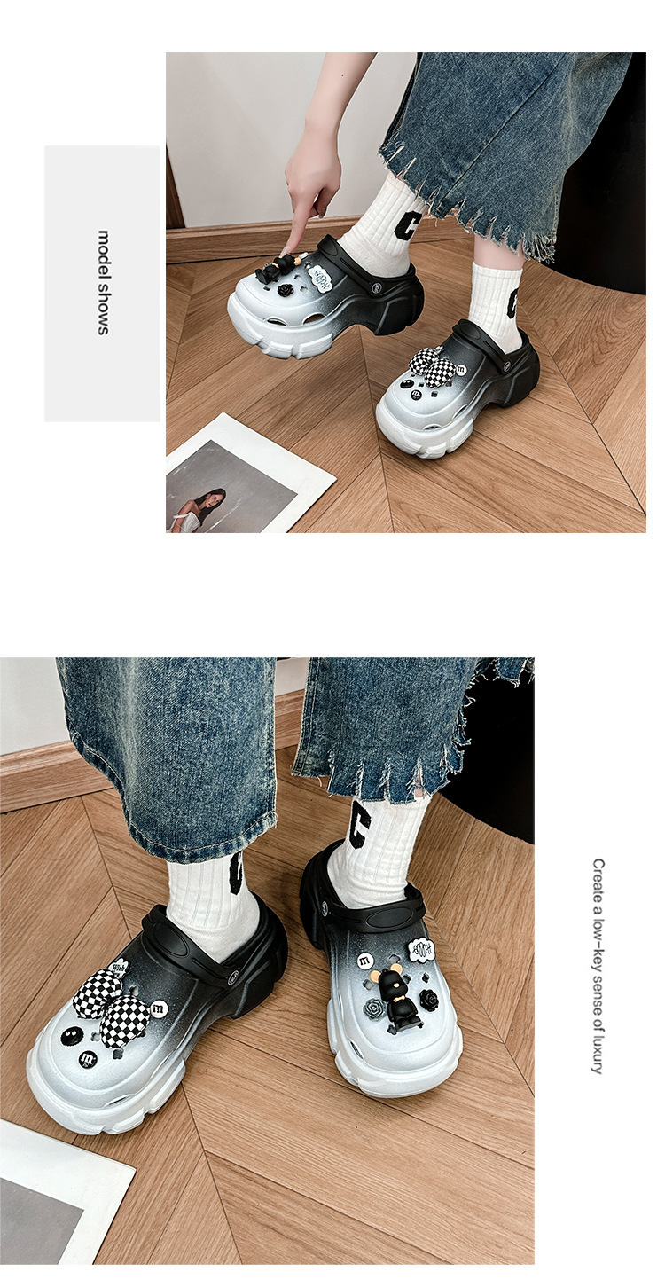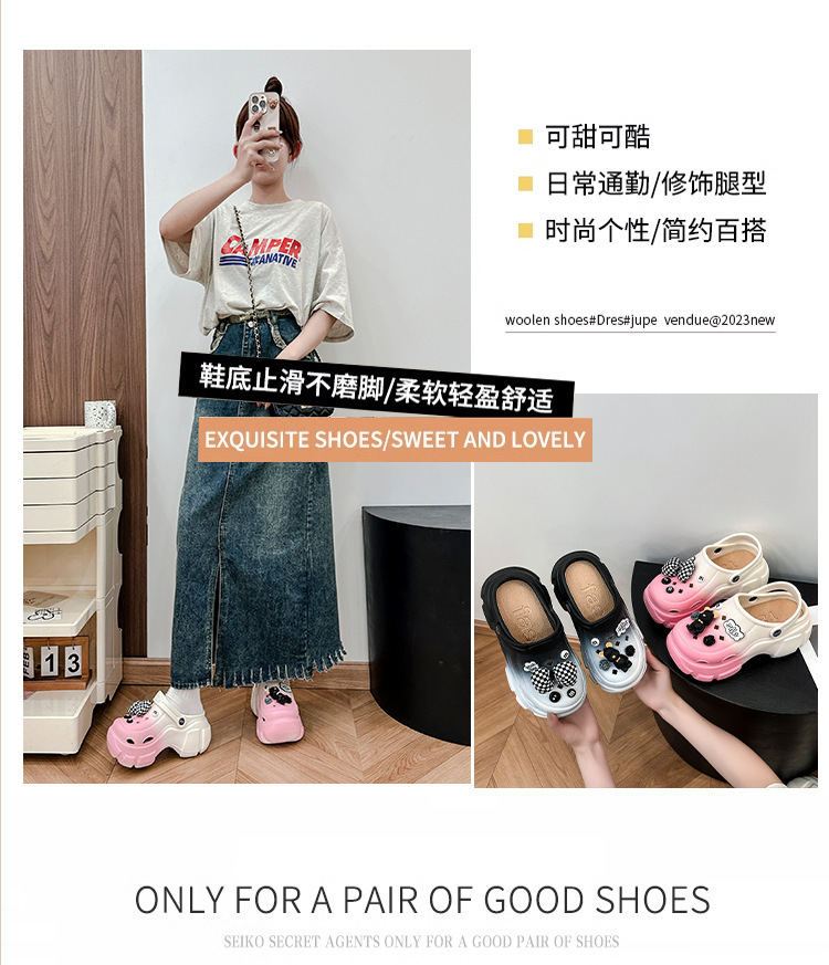 2024 동굴 신발 여성 여름 옷 한국식 높이 증가 두꺼운 밑창 미끄럼 방지 패션 인터넷-유명한 귀여운 비치 샌들