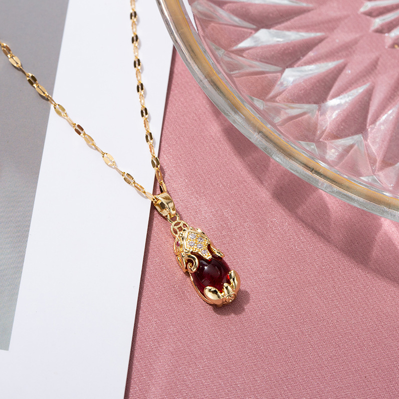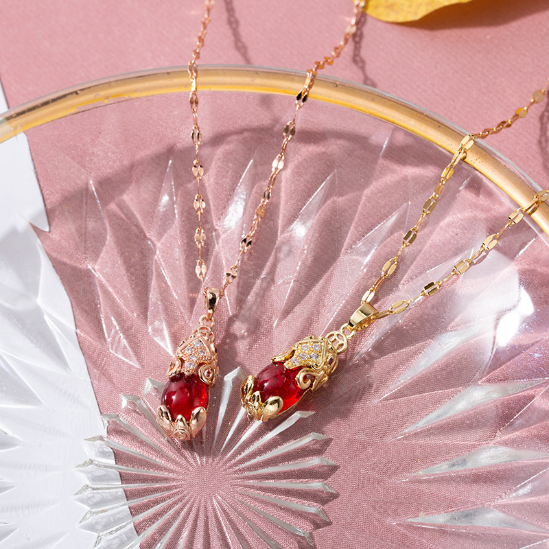 퇴색하지 않는 티타늄 스틸 목걸이 여성의 복고풍 붉은 여우 패션 용감한 펜던트 부 전송 기질 쇄골 체인 액세서리스토어 가기