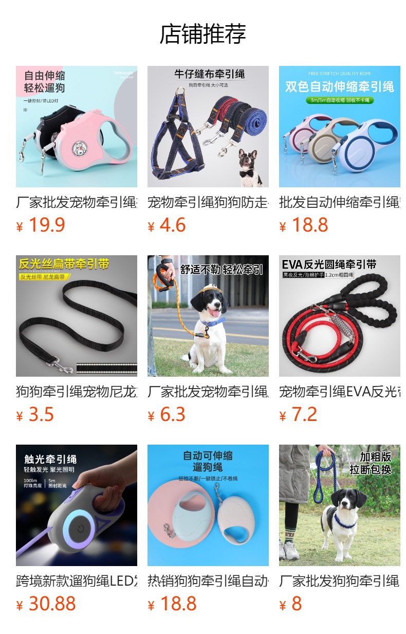 강아지 목줄 나일론 방폭 손에 꽉 끼지 않는 산책줄 원형줄 반사 애완견 목줄 야간 산책 대형견용스토어 가기