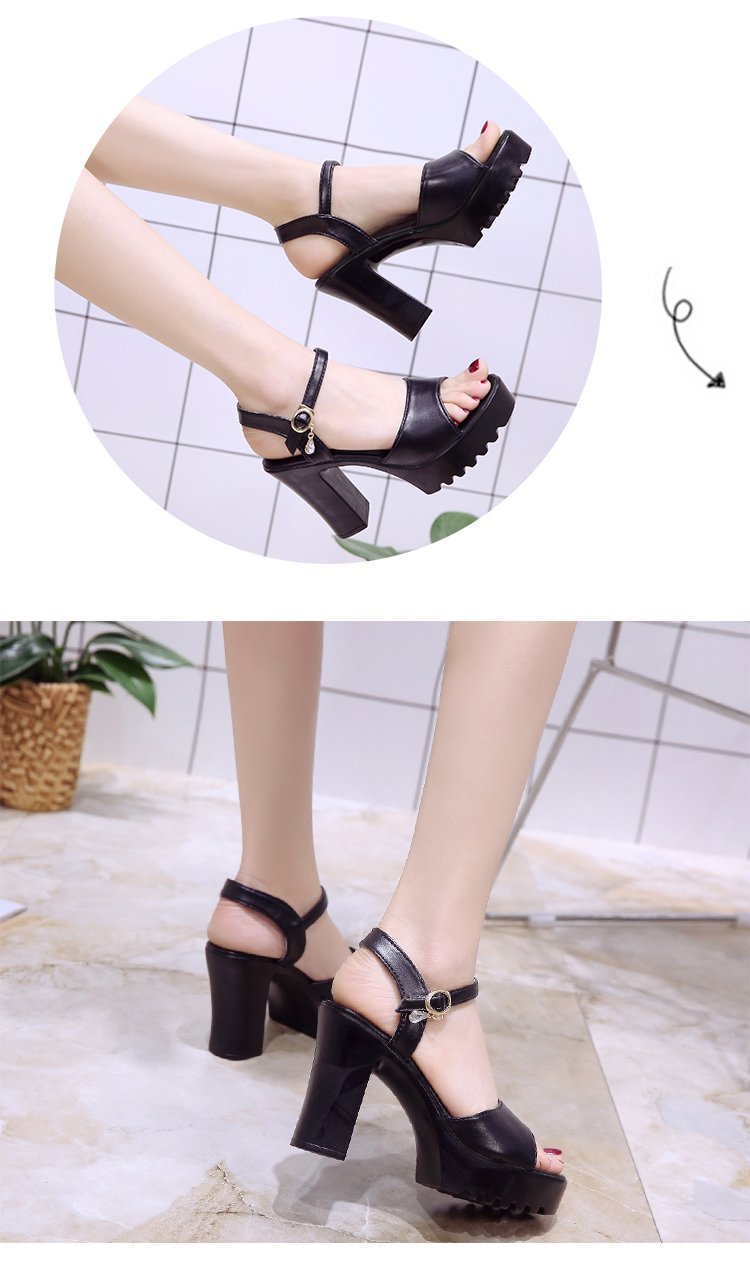 샌들 여성 여름 하이힐 두꺼운 힐 플랫폼 섹시한 새 한국 스타일 여성 신발 스크럽 버클 및 생선 입스토어 가기