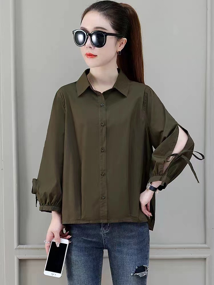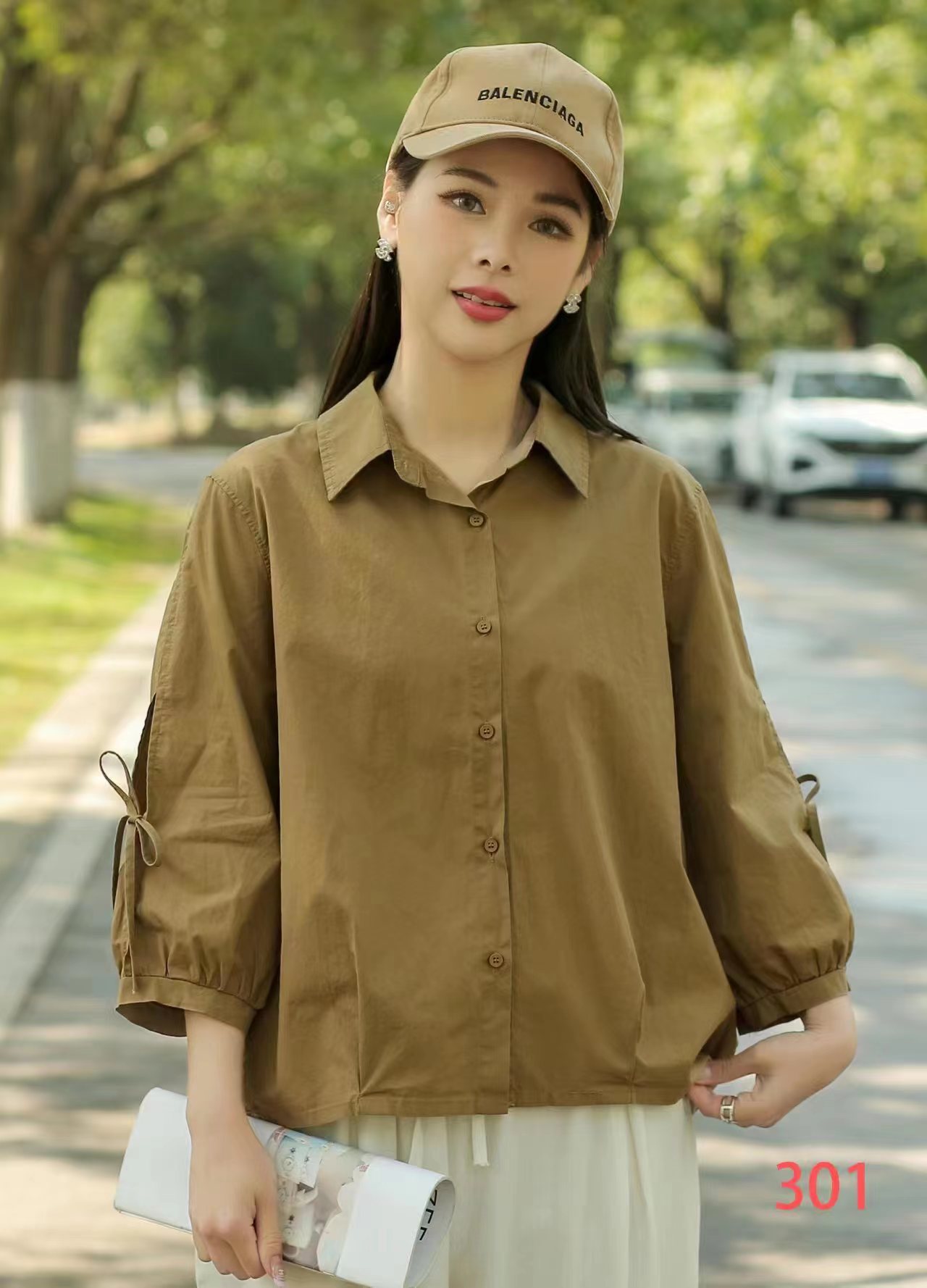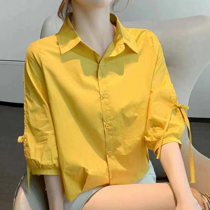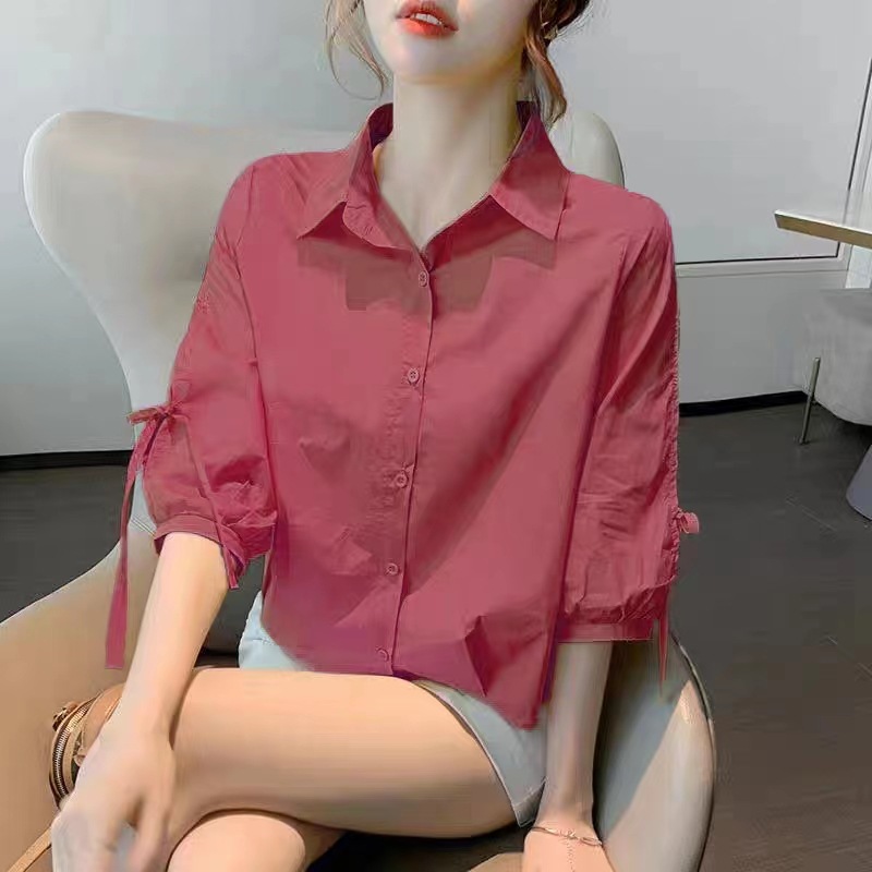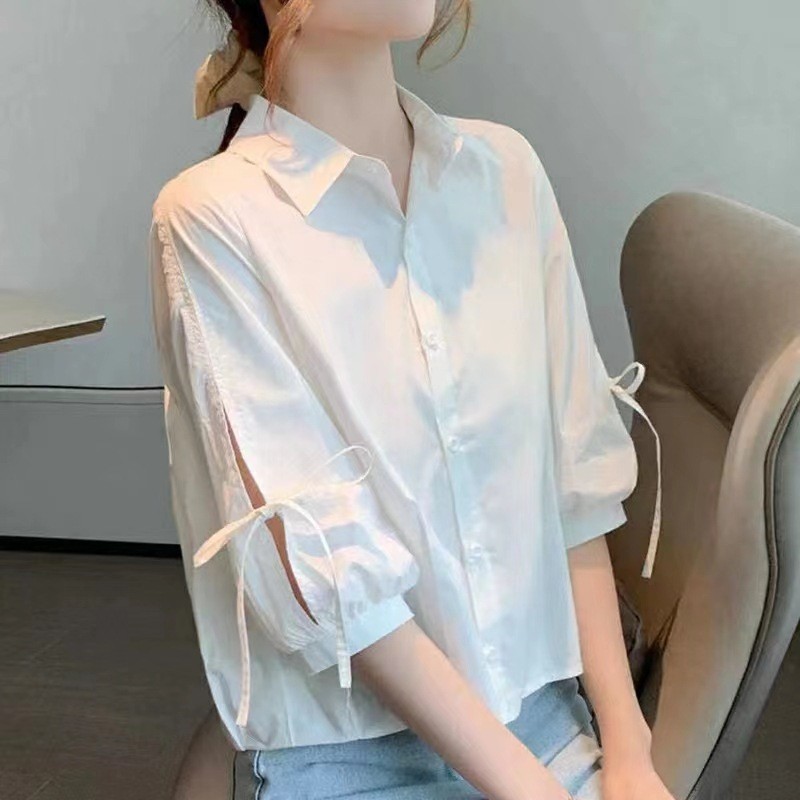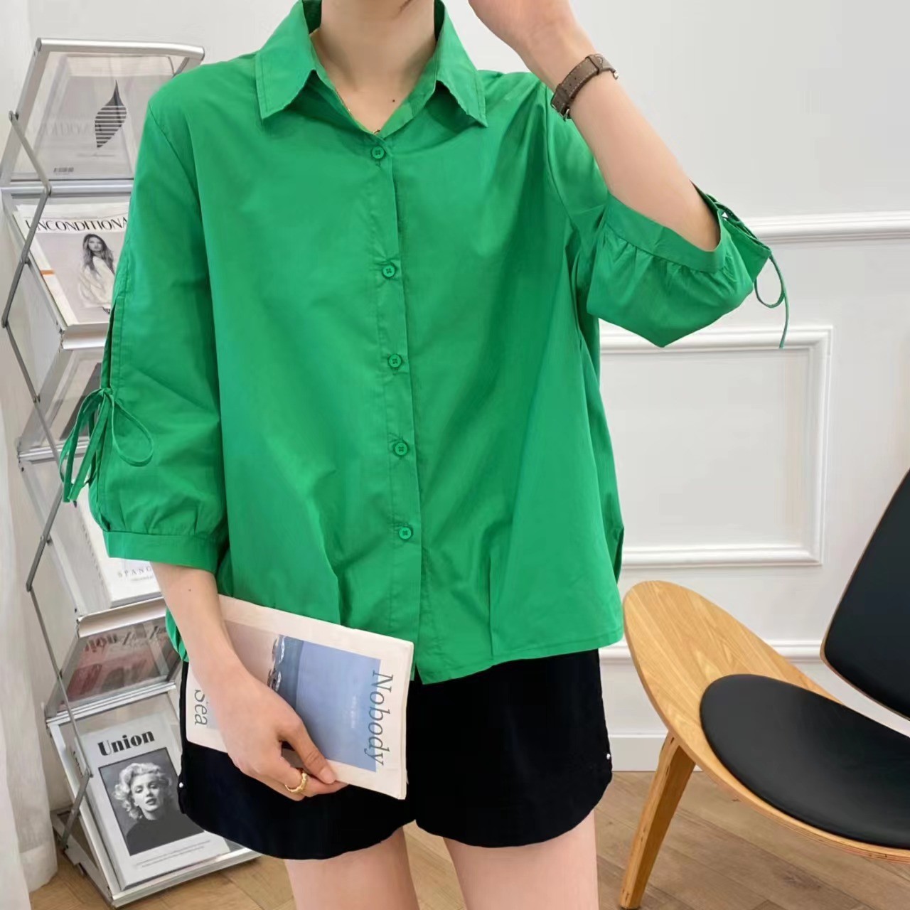 레이스 업 랜턴 슬리브 7 점 슬리브 여성용 여름 새로운 느슨한 슬리밍 웨스턴 스타일 유행 캐주얼 탑 여성스토어 가기