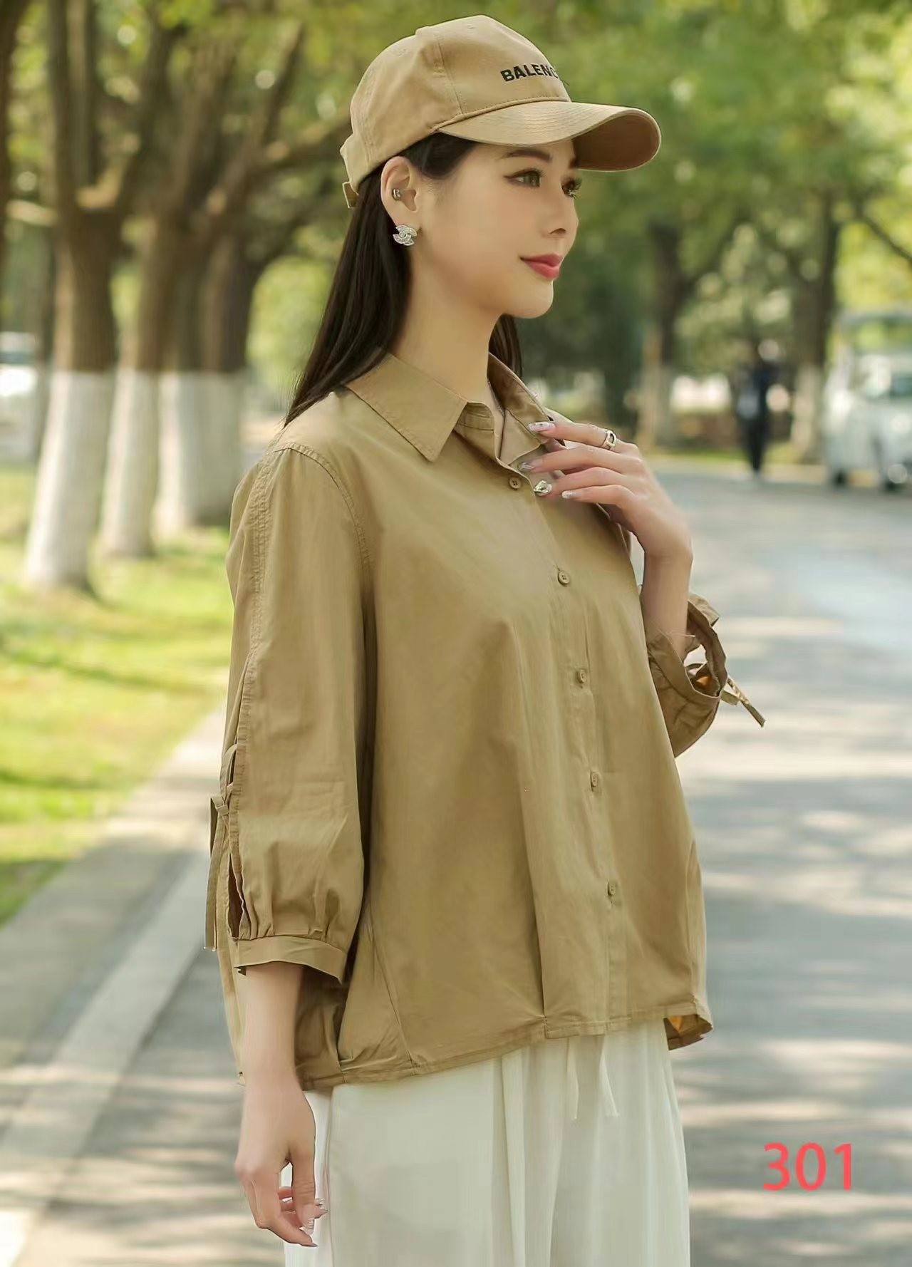 레이스 업 랜턴 슬리브 7 점 슬리브 여성용 여름 새로운 느슨한 슬리밍 웨스턴 스타일 유행 캐주얼 탑 여성
