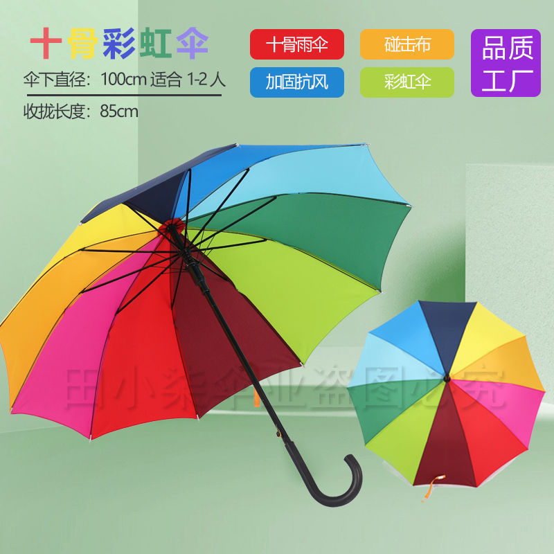 • 10 뼈 무지개 우산 (선택 직선 손잡이)