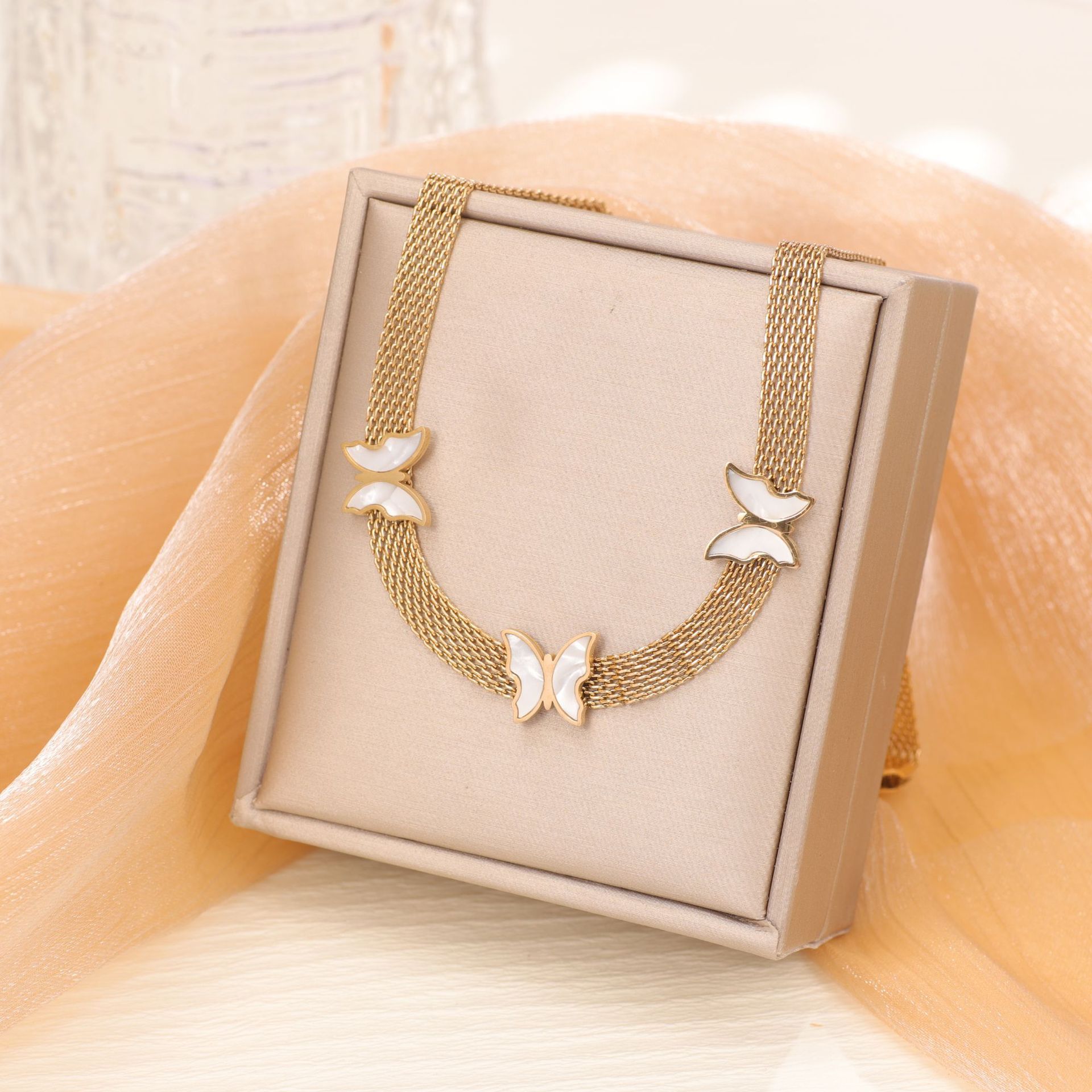티타늄 스틸 컬러 프리 나비 블레이드 체인 목걸이 세련된 Ins 스타일 우아한 인터넷 연예인 간단한 가벼운 럭셔리 고급 고급 퍼스트 쥬얼리스토어 가기