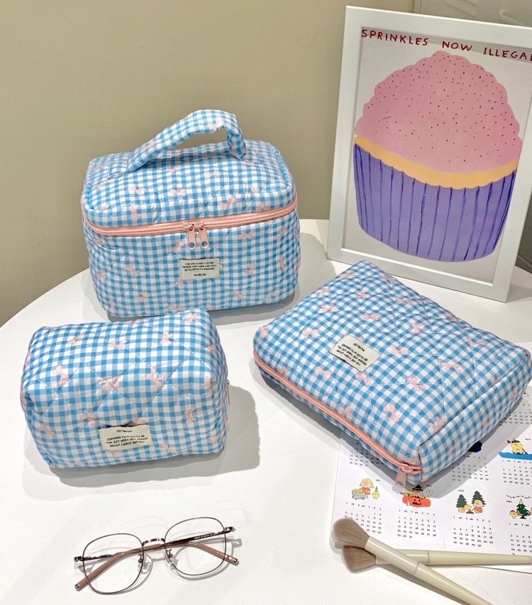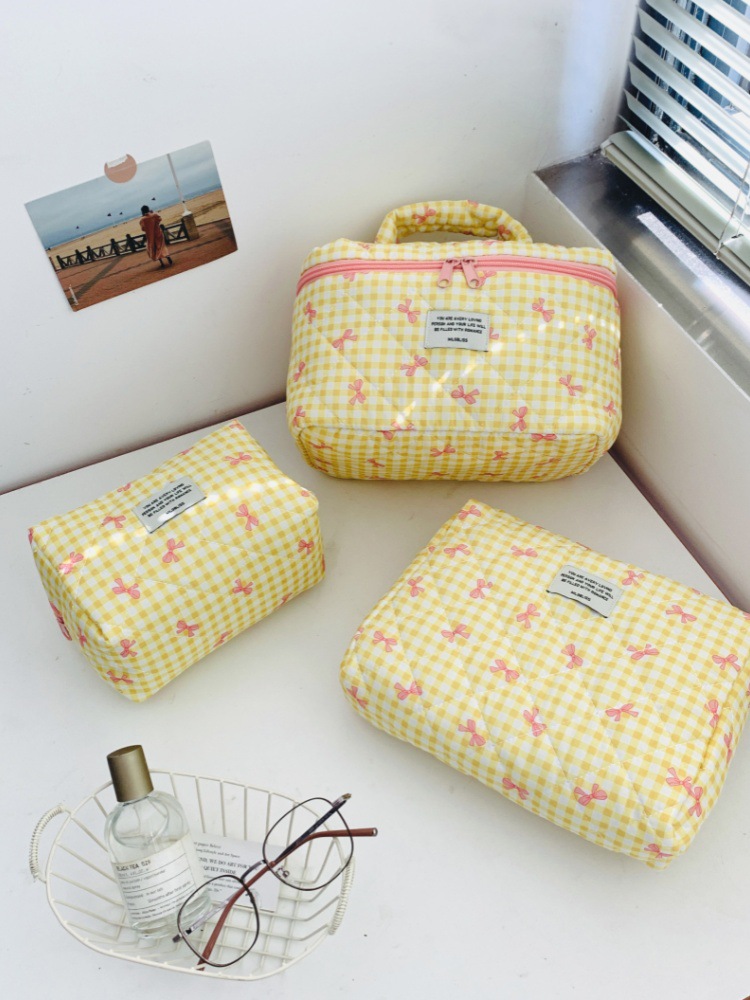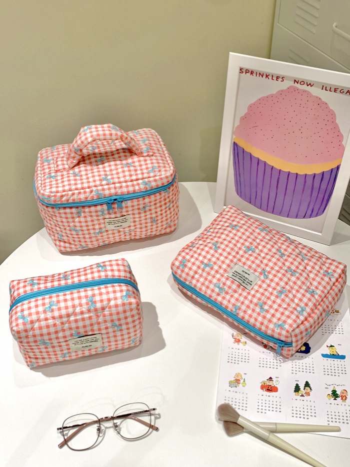 새로운 스타일의 누비 격자 무늬 화장품 가방, 대용량, 고급스럽고 귀엽고 멋진 수납 가방, 일괄스토어 가기