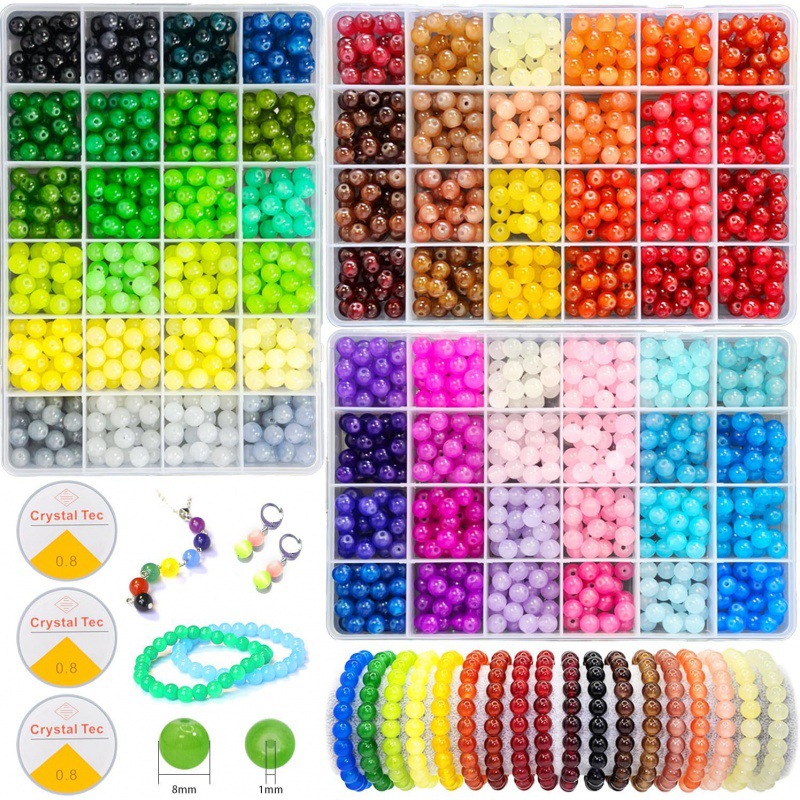국경 새로운 8mm 유리 구슬 세트 DIY 수제 목걸이 팔찌 구슬 보석 액세서리 2 색 유리 구슬스토어 가기