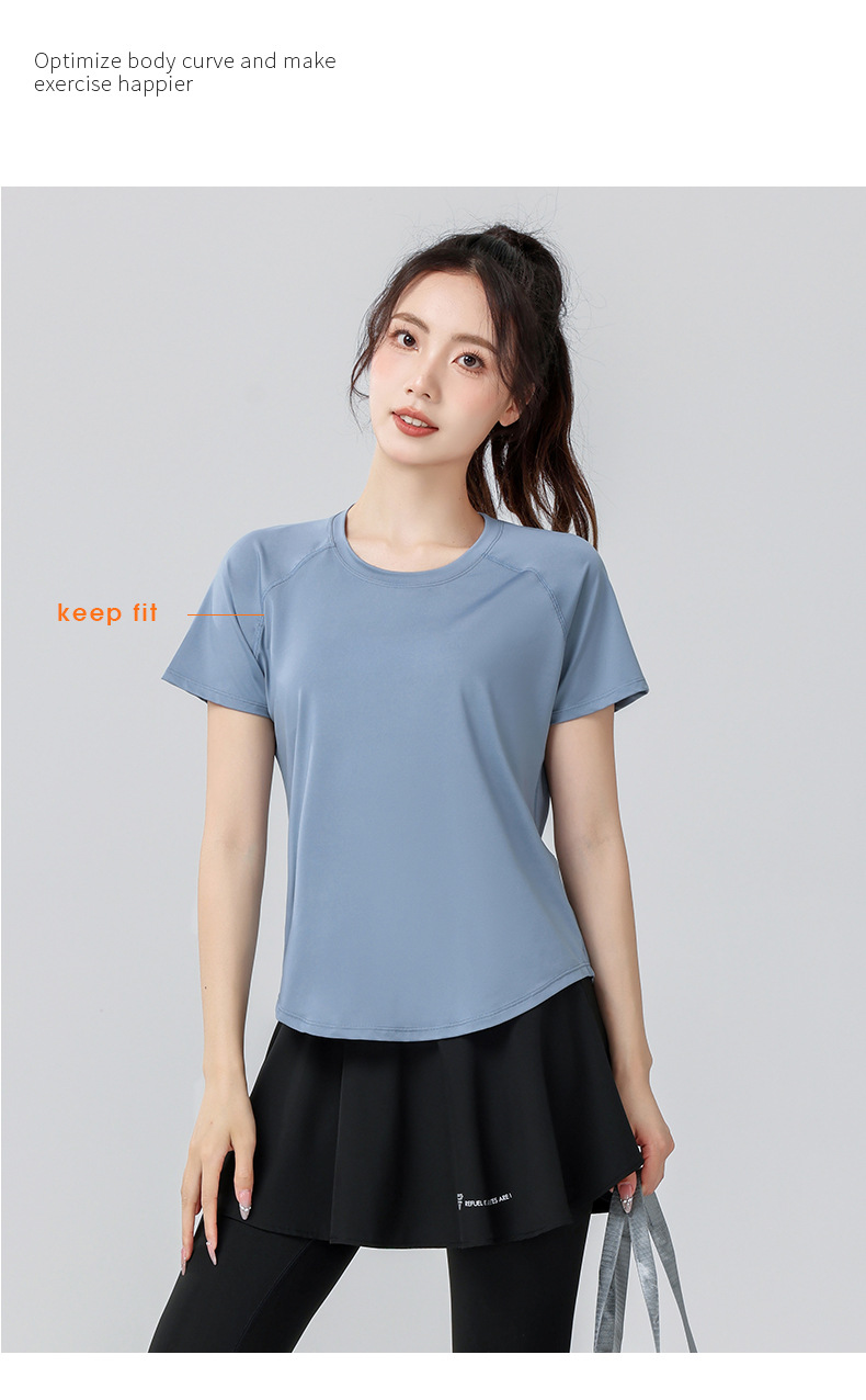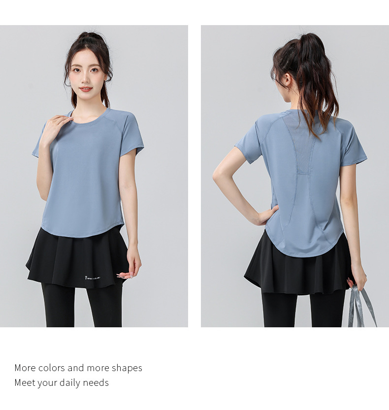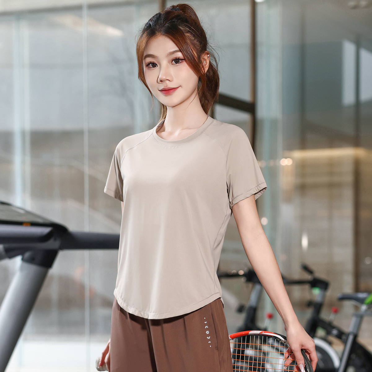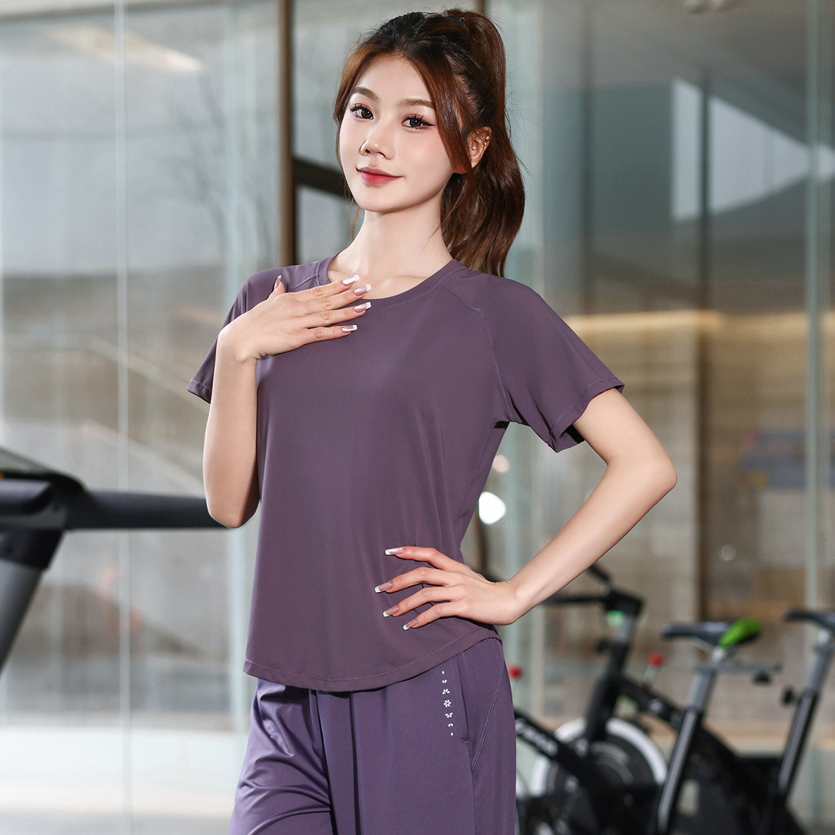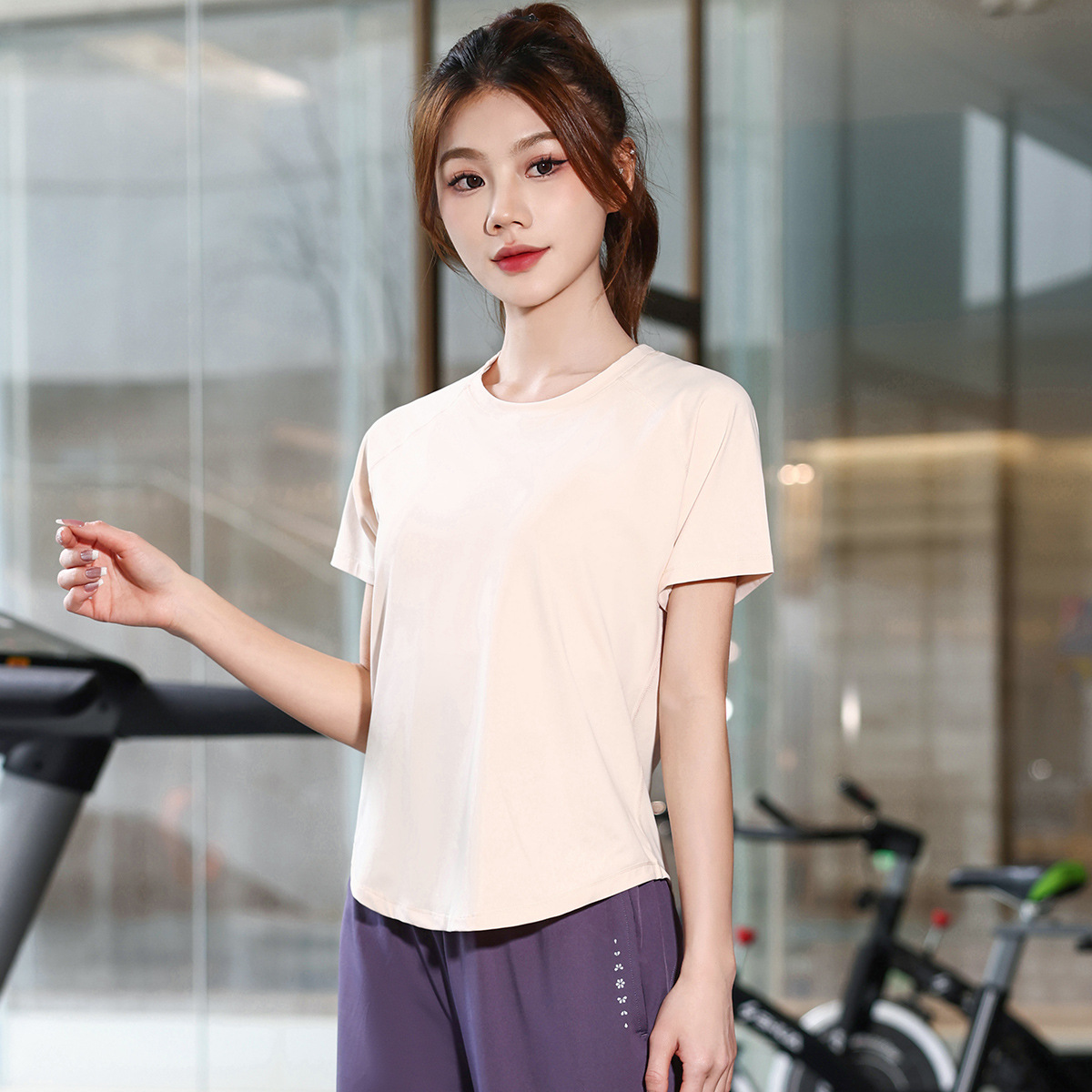 2025 여름 새로운 요가 정장 짧은 소매 얇은 훈련 양복 실행 피트니스 느슨한 운동복 여성상의