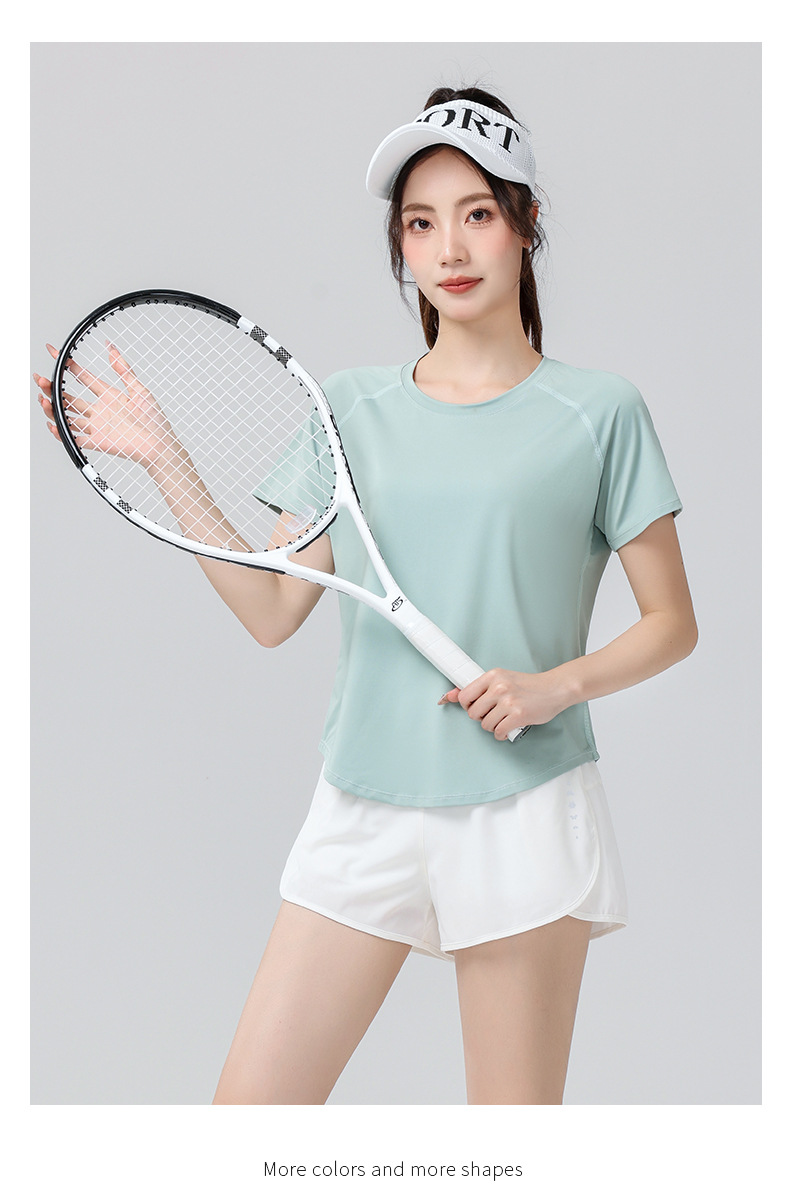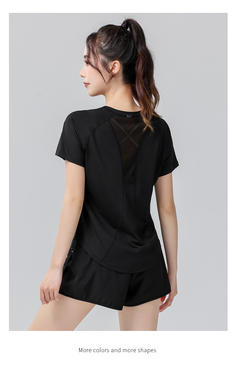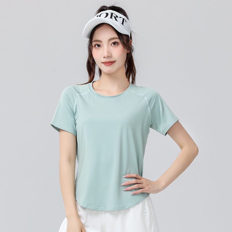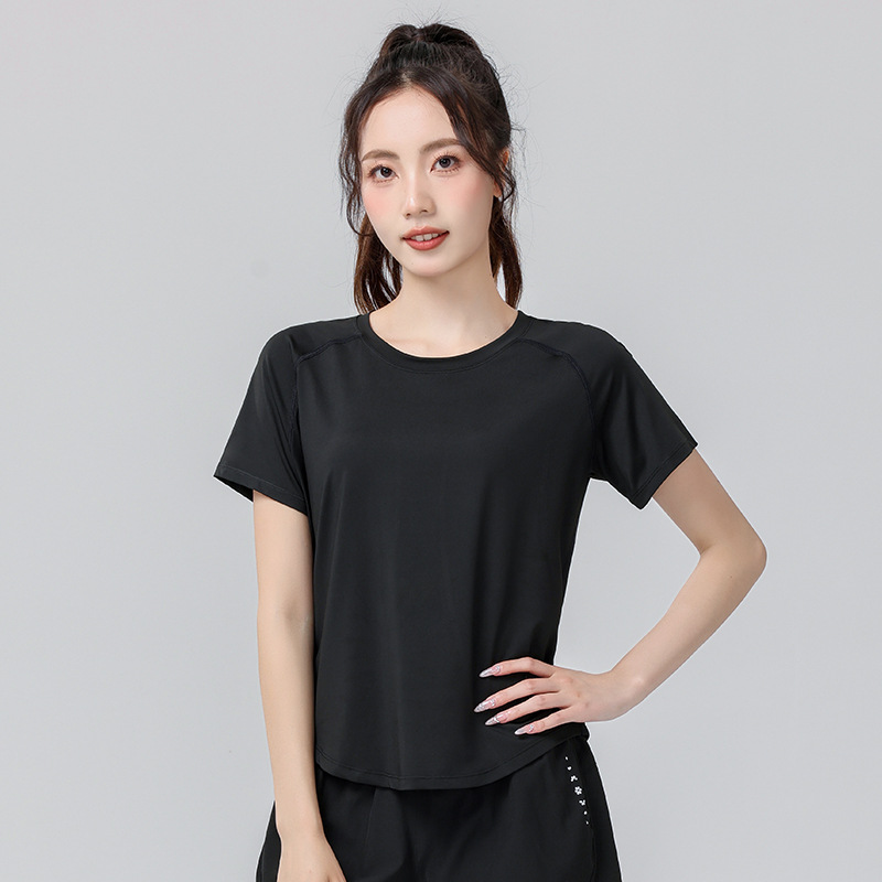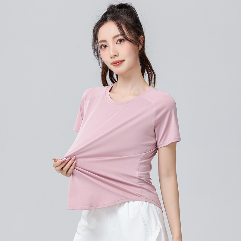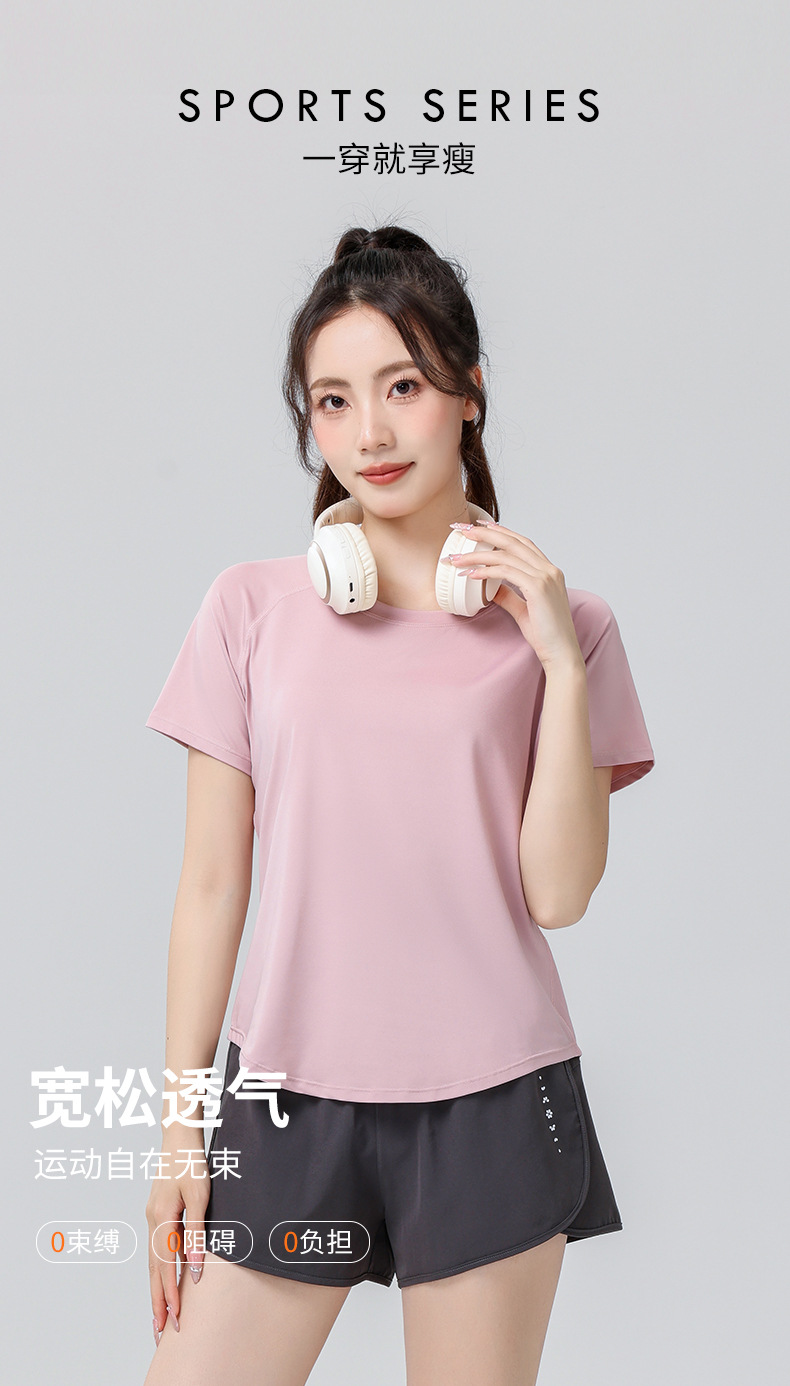 2025 여름 새로운 요가 정장 짧은 소매 얇은 훈련 양복 실행 피트니스 느슨한 운동복 여성상의