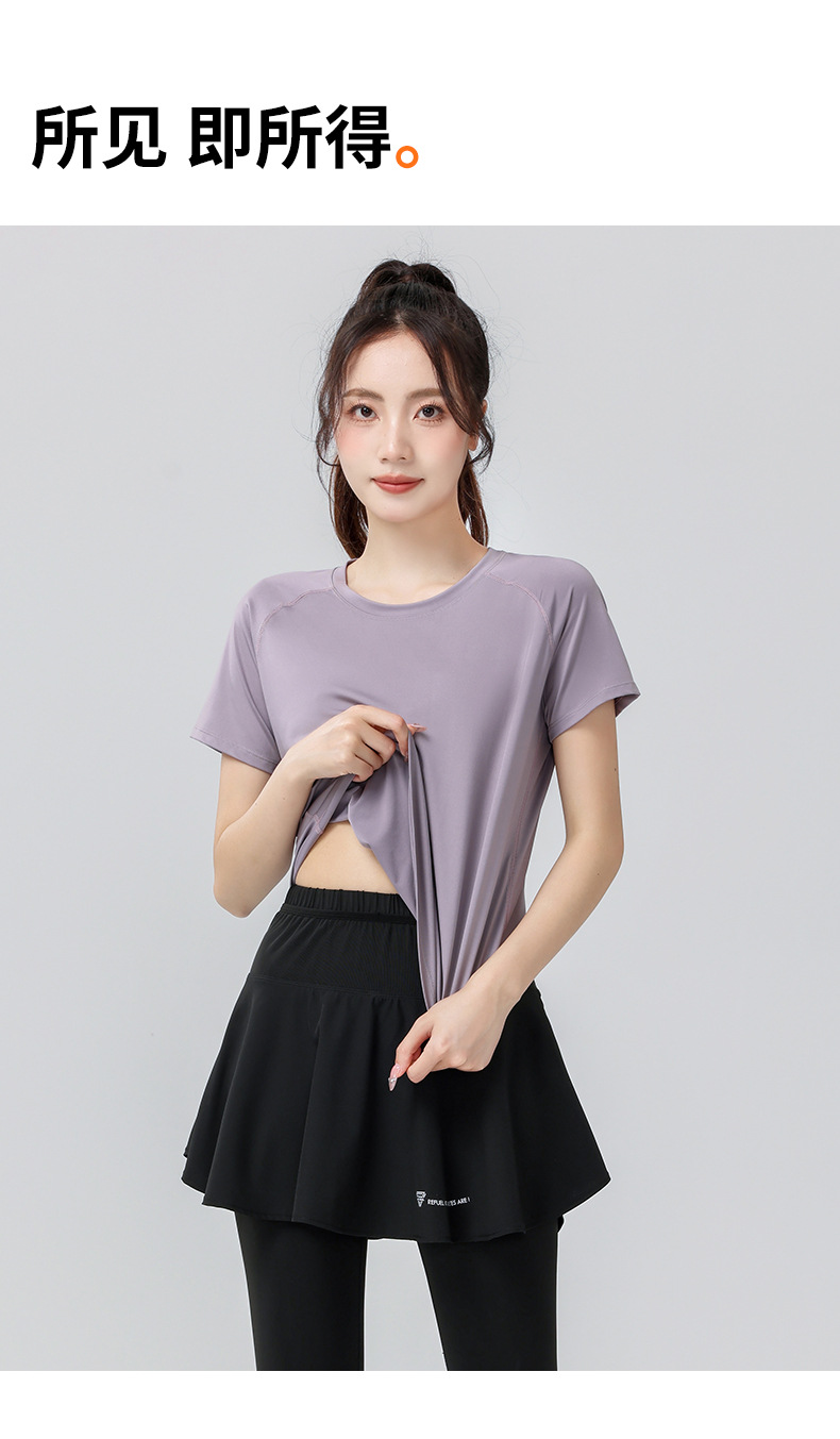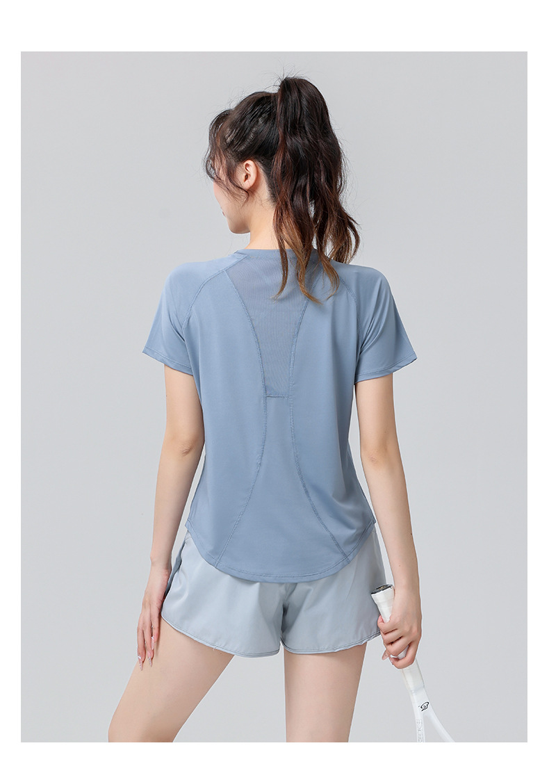 2025 여름 새로운 요가 정장 짧은 소매 얇은 훈련 양복 실행 피트니스 느슨한 운동복 여성상의스토어 가기