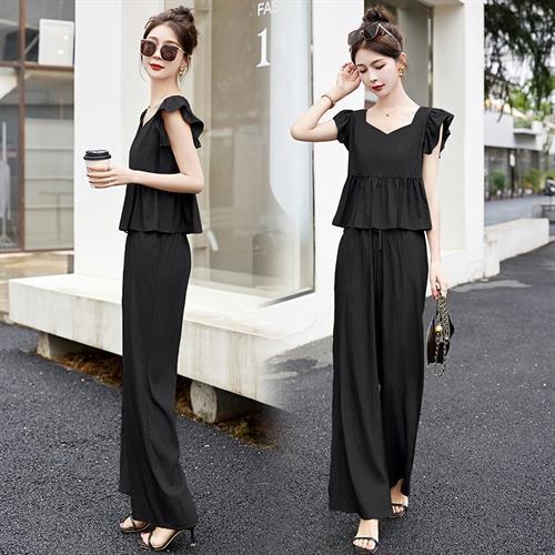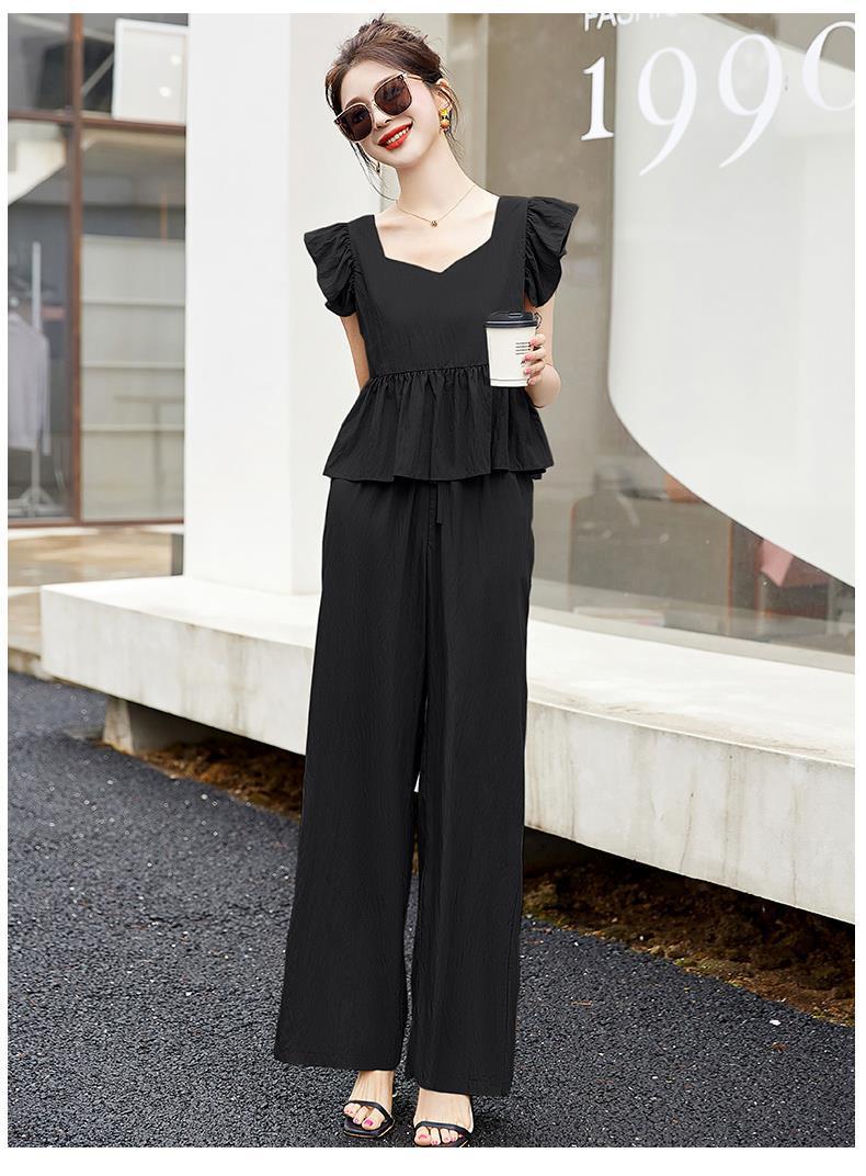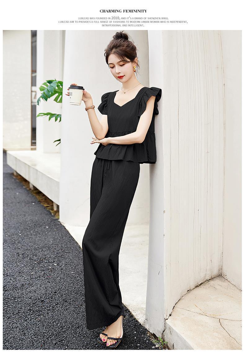 Xiaoxiang 스타일 완벽한 매칭 세트 여성의 2024 여름 새로운 슬리밍 연령 감소 하이 엔드 와이드 레그 바지 투피스 세트