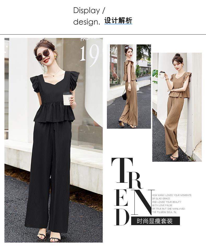 Xiaoxiang 스타일 완벽한 매칭 세트 여성의 2024 여름 새로운 슬리밍 연령 감소 하이 엔드 와이드 레그 바지 투피스 세트스토어 가기