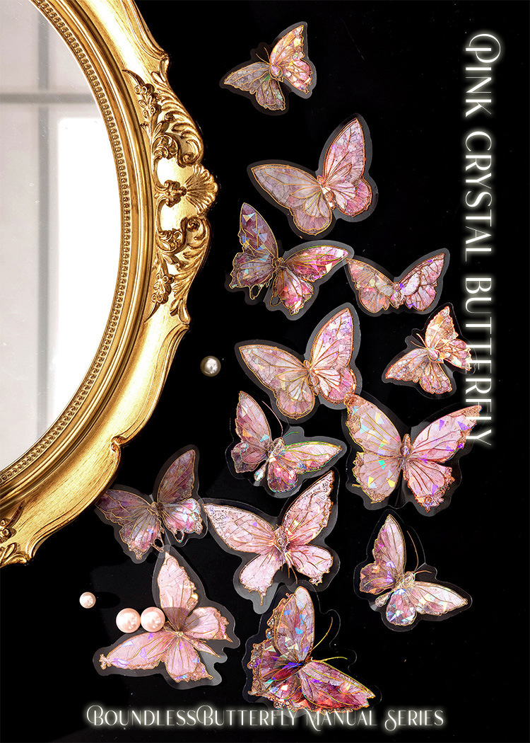 Momo PET 스티커 팩 무제한 나비 스펙트럼 시리즈 입체 얼음 크리스탈 레이저 골드 INS 스타일 나비 핸드북 Guka 스티커
