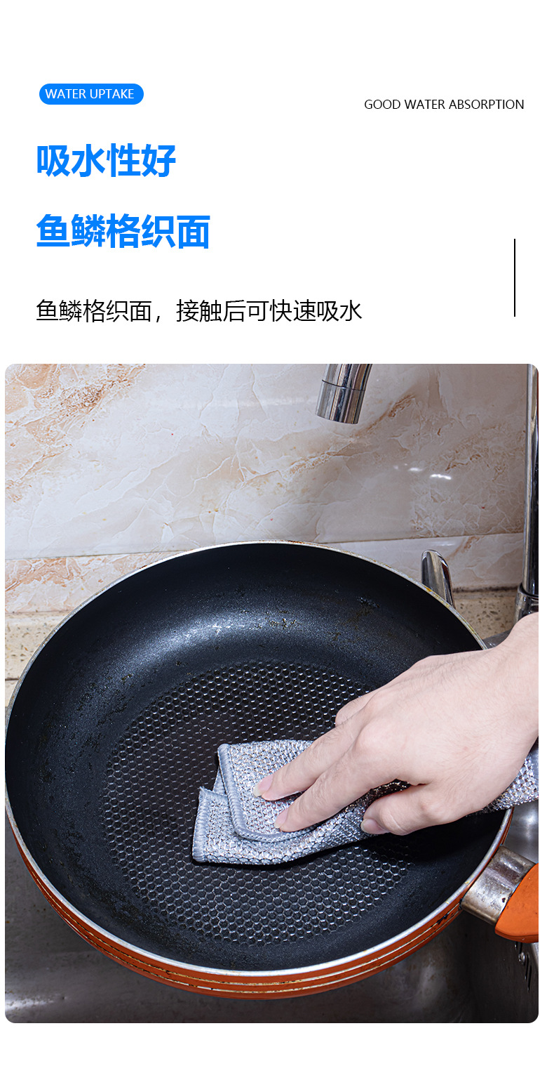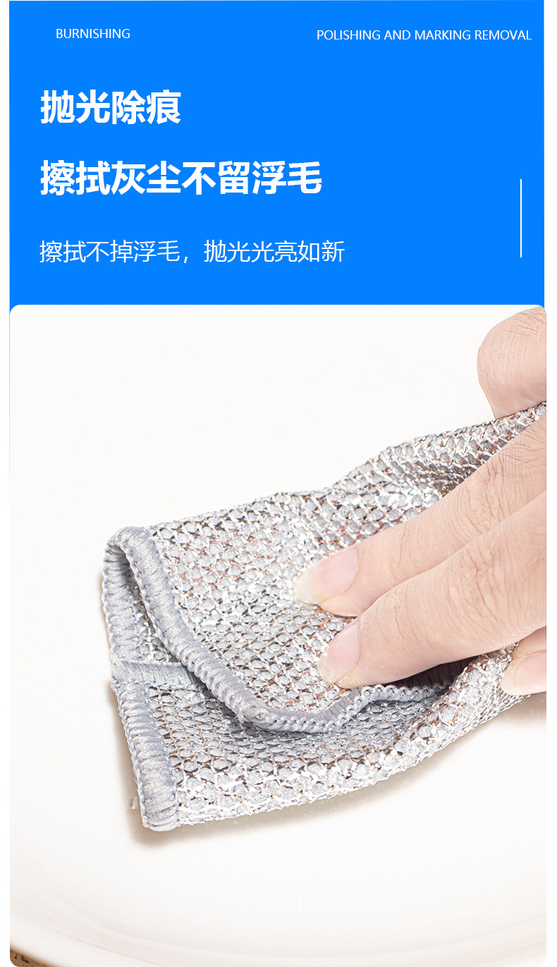 실버 와이어 헝겊 주방 청소는 전통적인 강철 와이어 볼 그리드 다기능 대신 청소하기 쉬운 플록을 떨어 뜨리지 않습니다.
