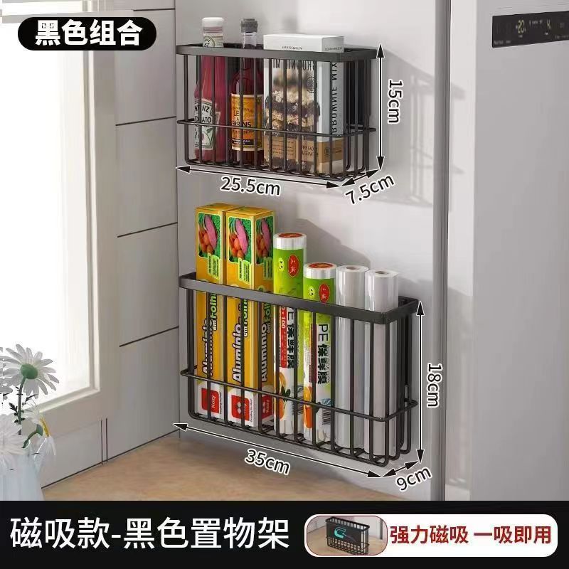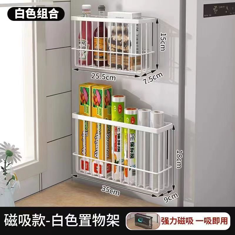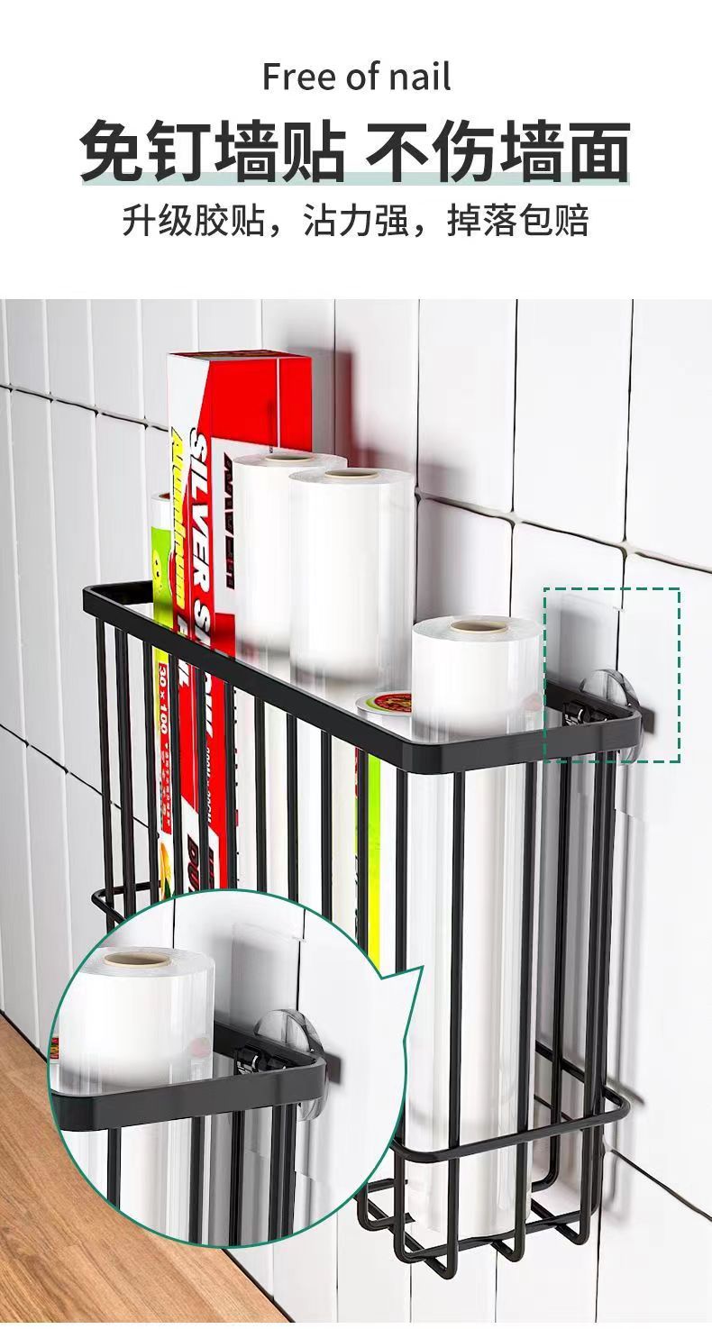 냉장고 사이드 스토리지 랙 주방 다기능 아티팩트 펀치없는 벽 교수형 종이 랙 용 보존 필름 스토리지 랙