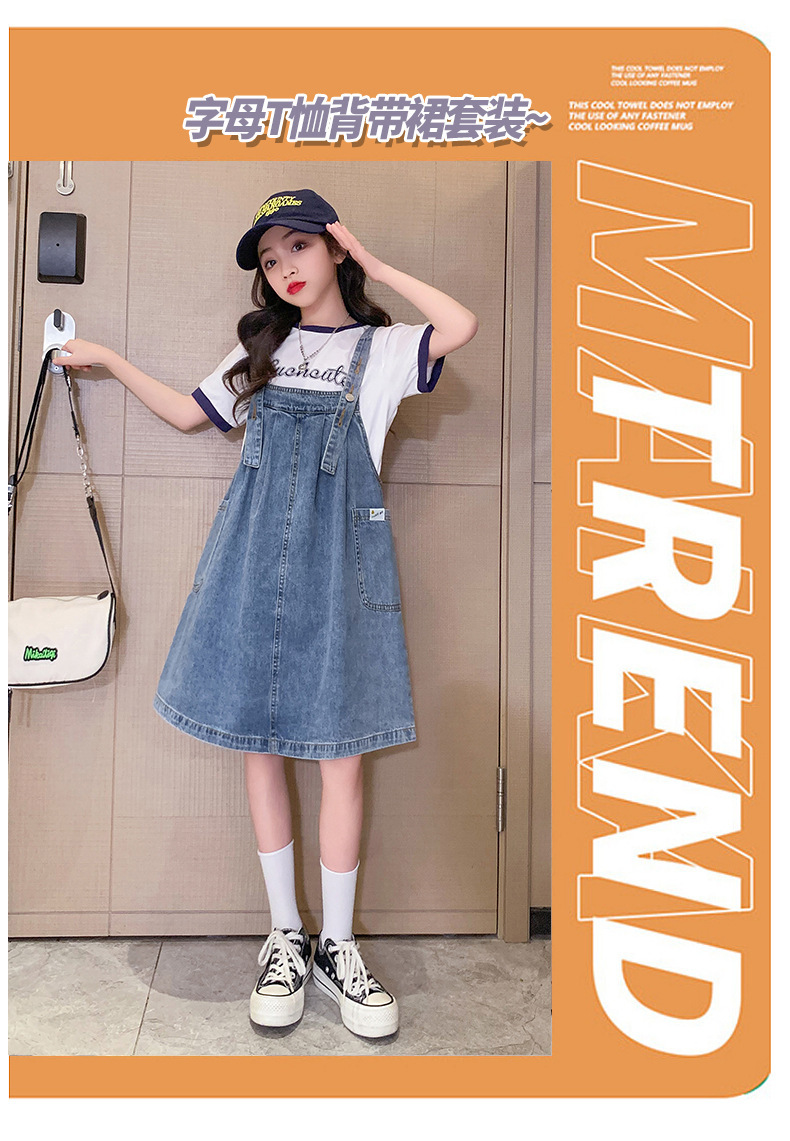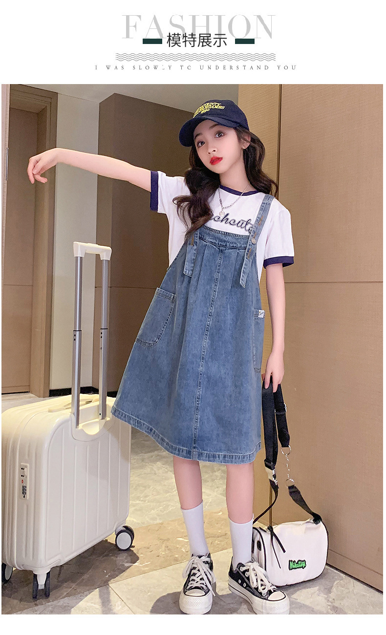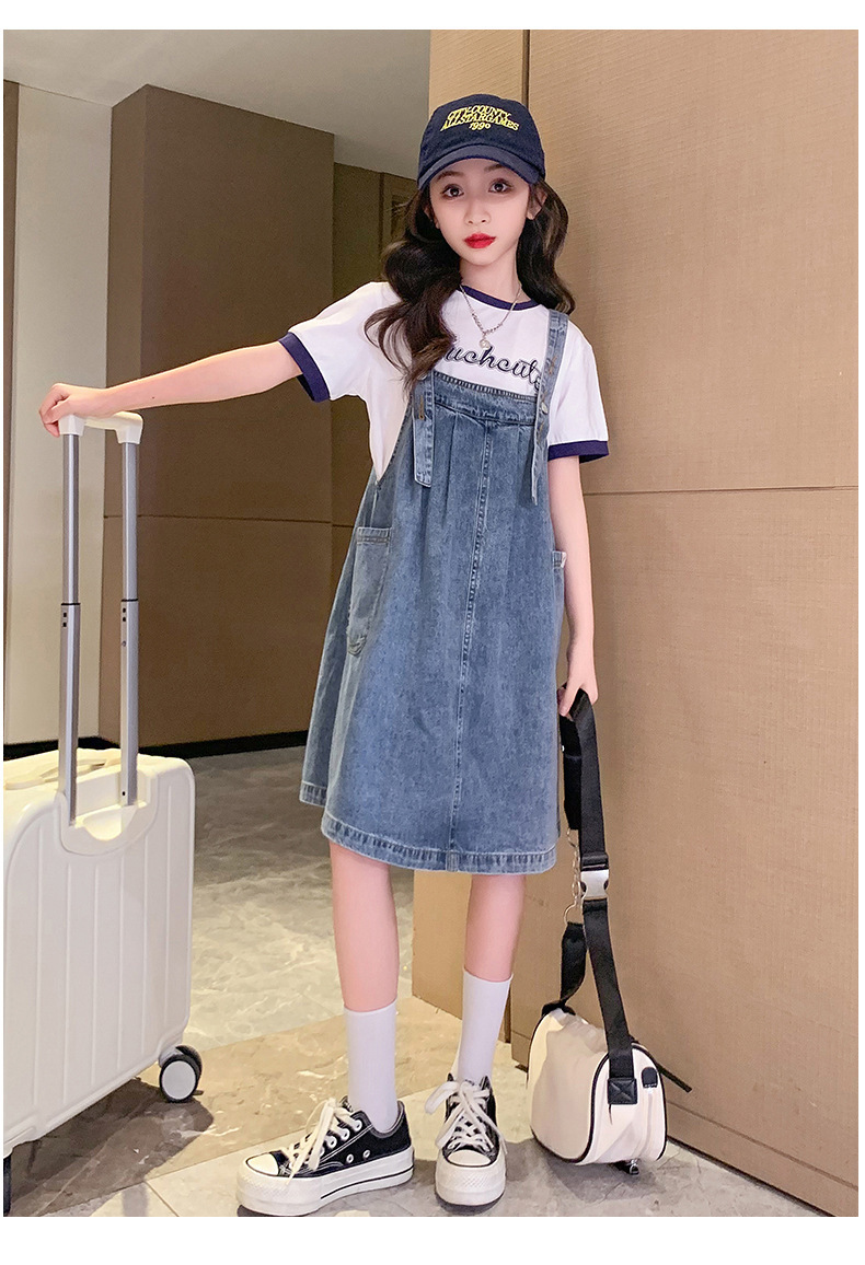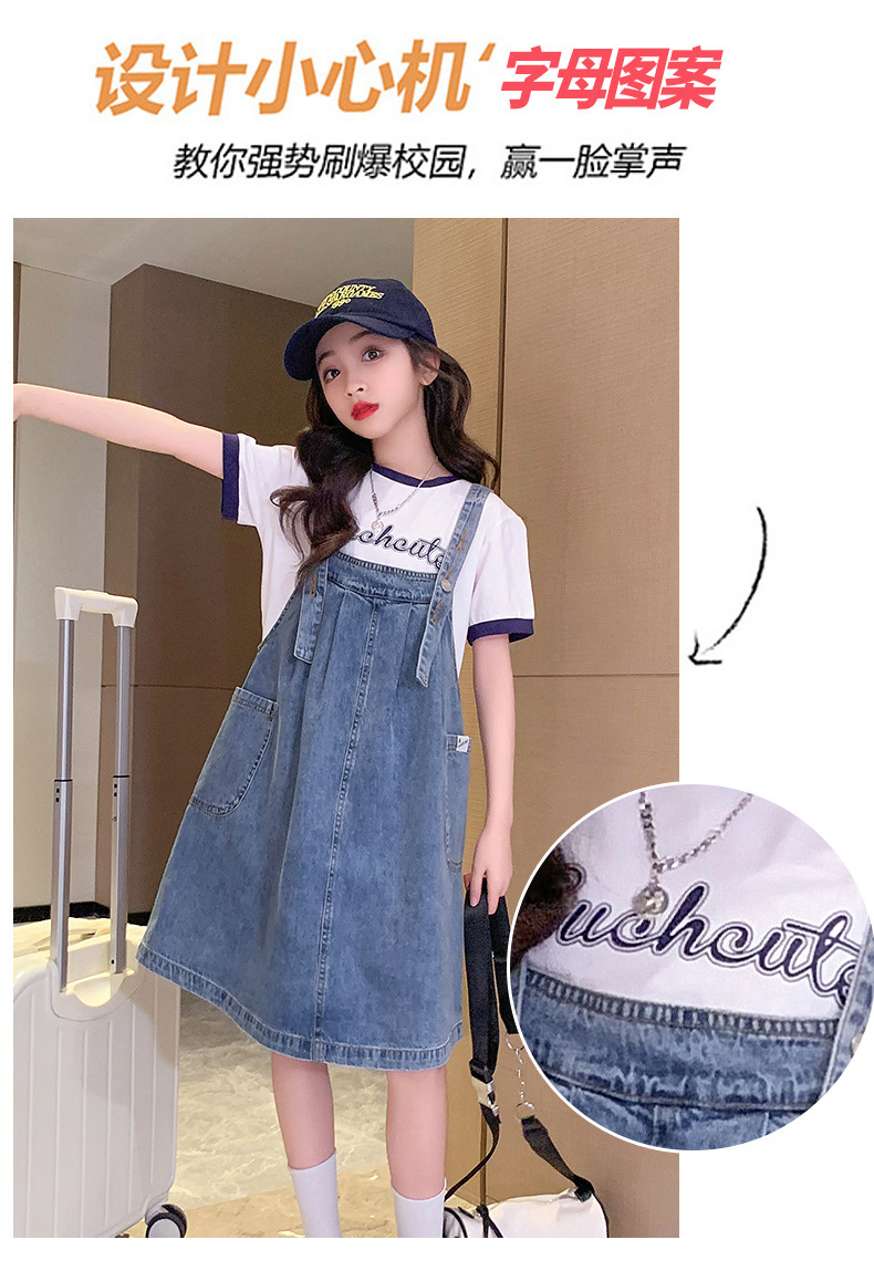 소녀 원피스 여름 세트 2024 새로운 스타일 어린이 여름 데님 큰 어린이를위한 트렌디 한 원피스 원피스스토어 가기