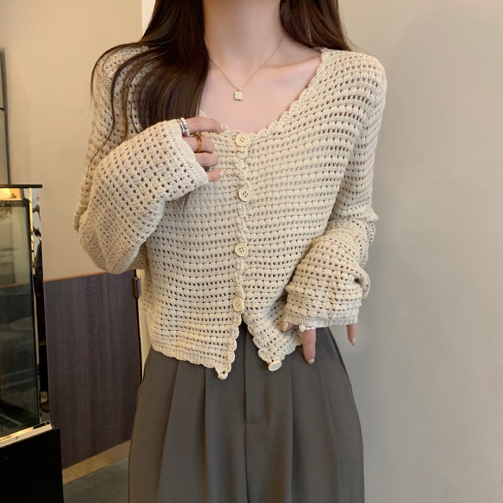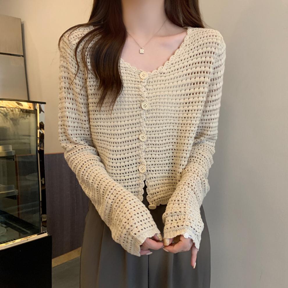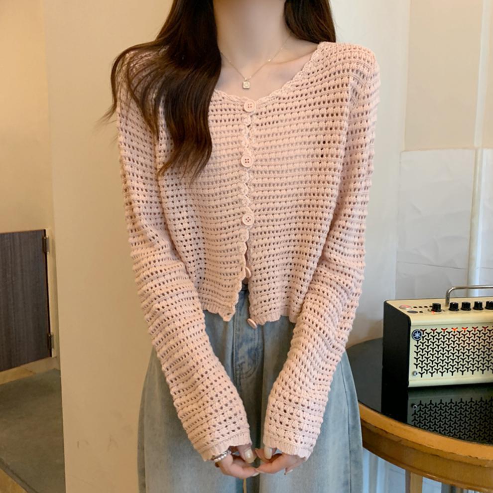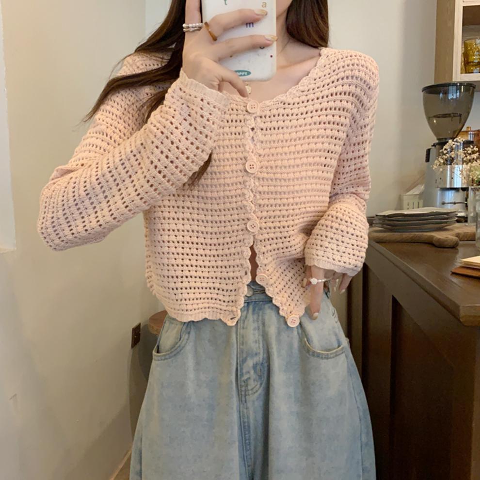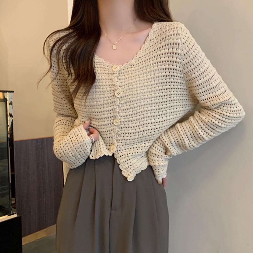 봄과 가을 한국식 느슨한 할로우 디자인 니트 카디건 탑 스웨터