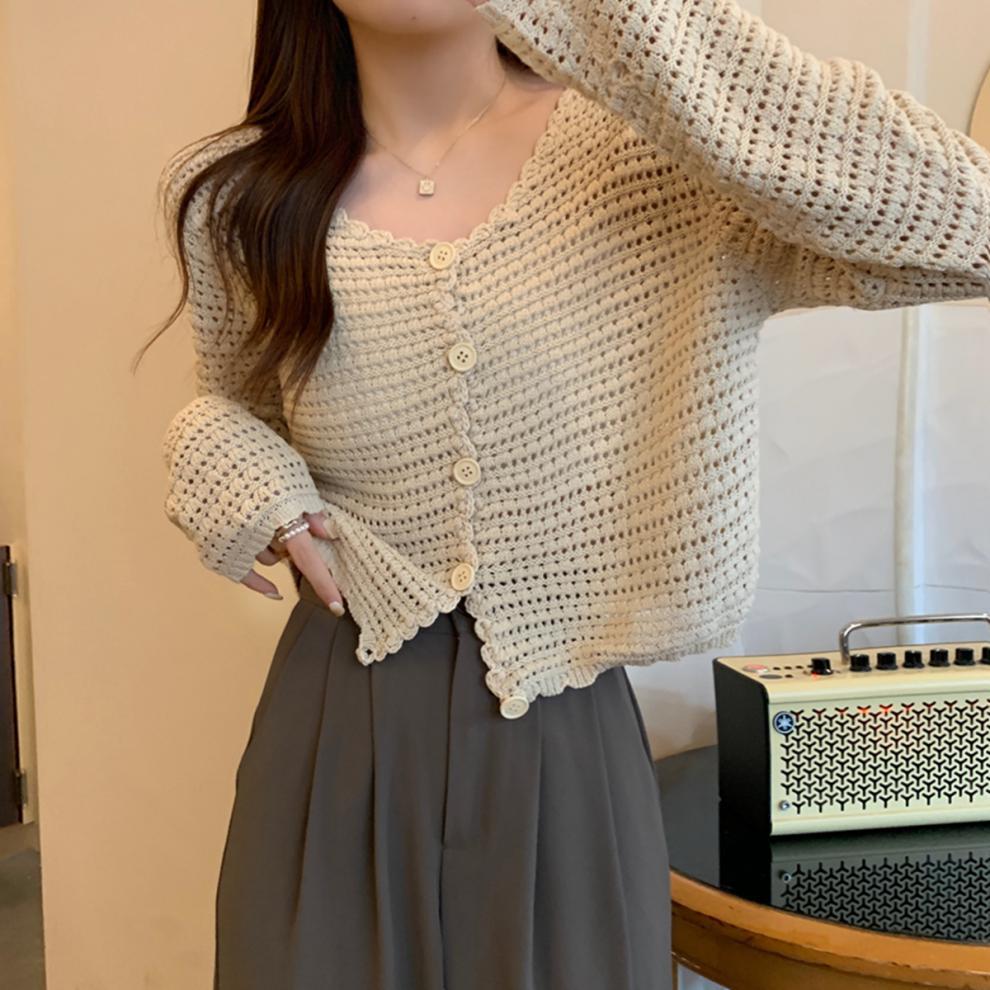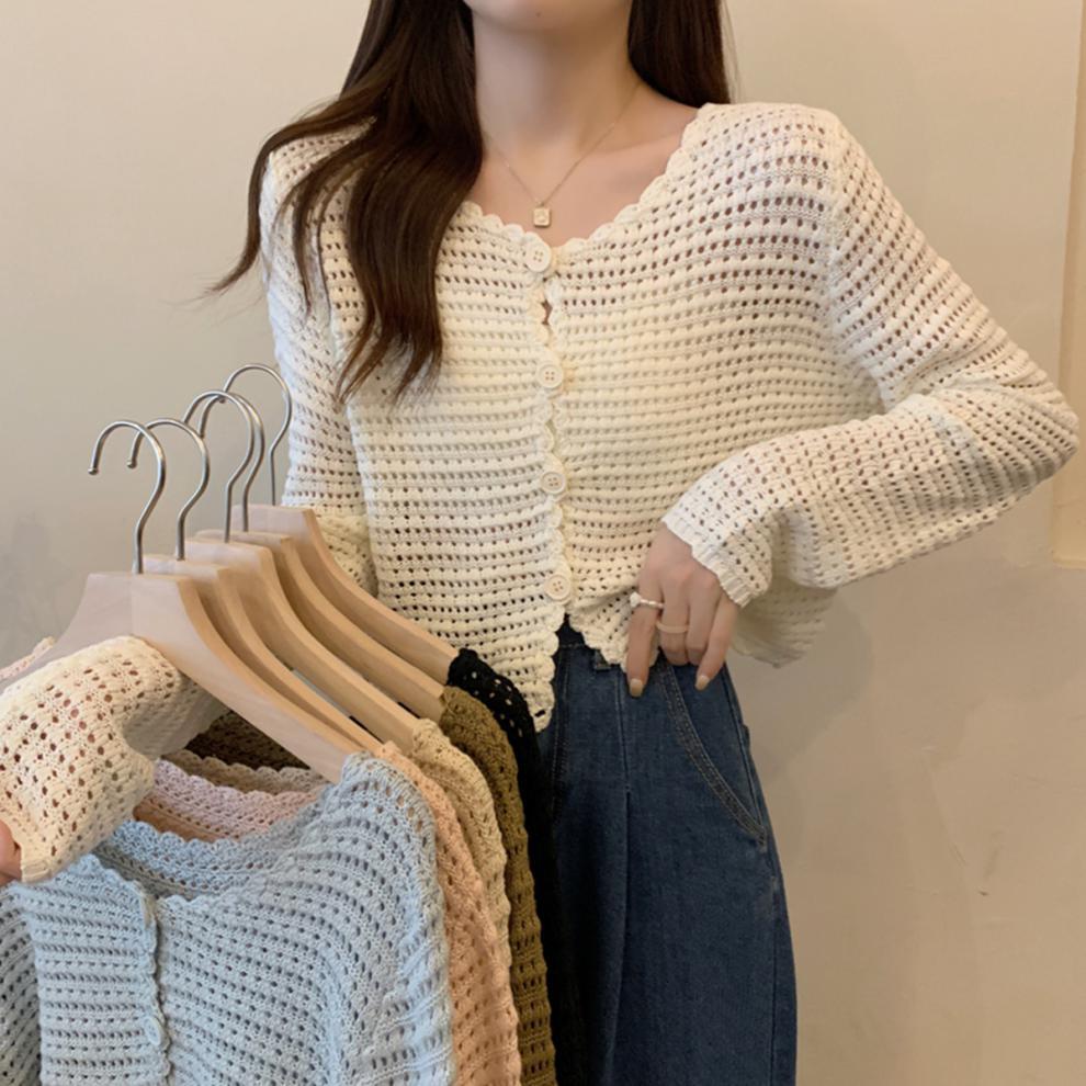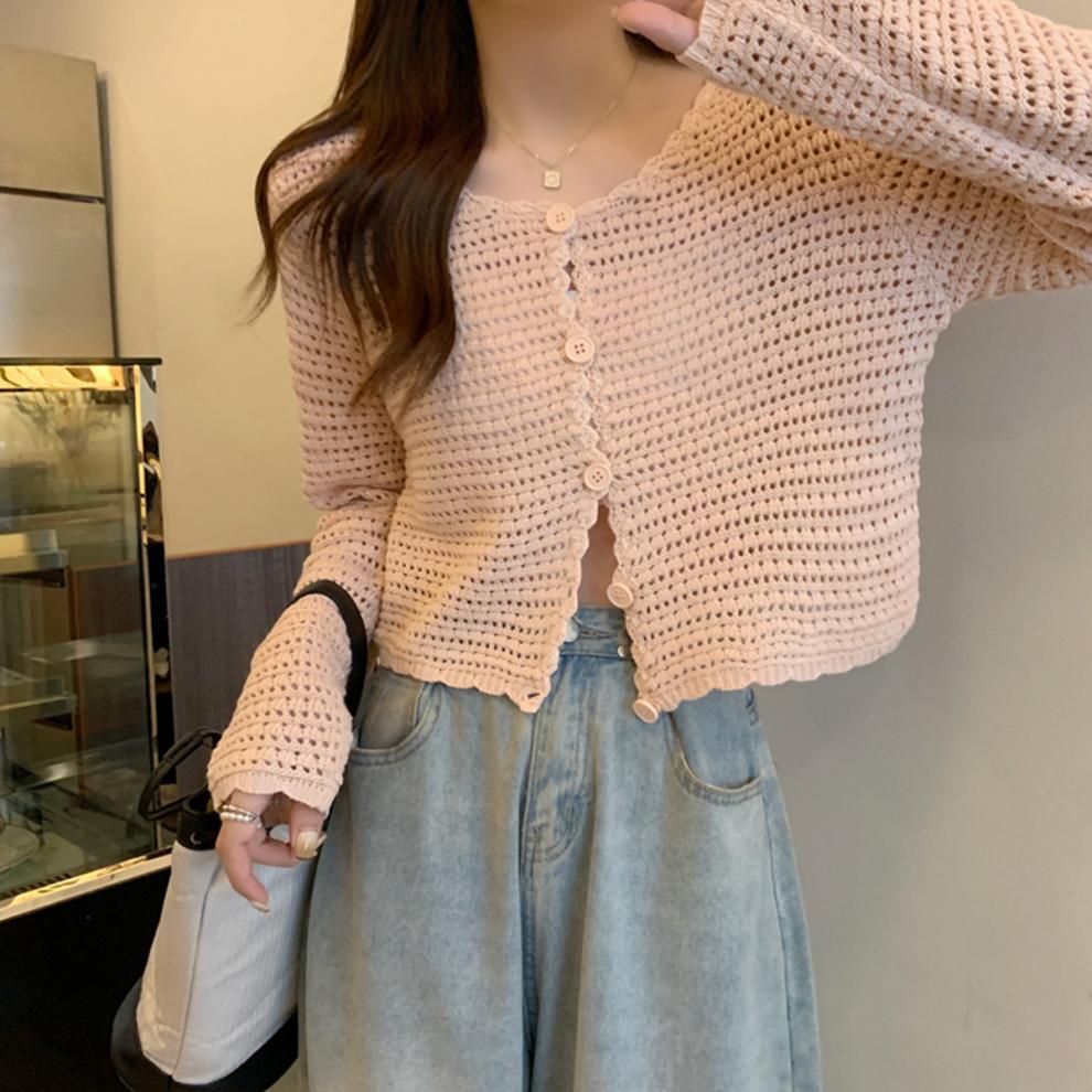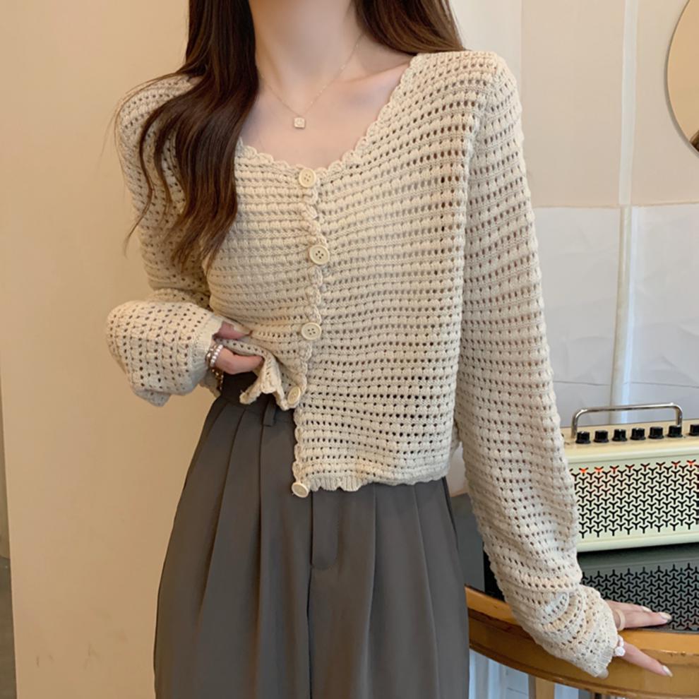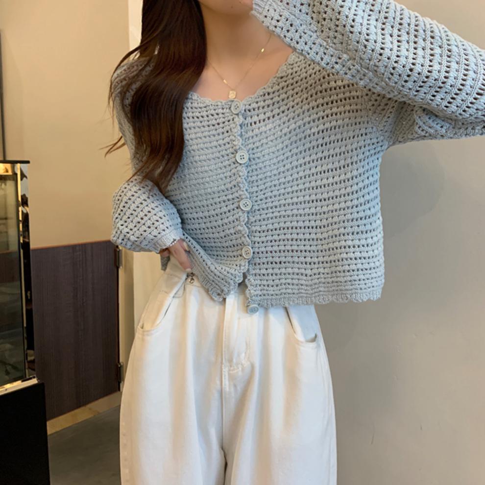 봄과 가을 한국식 느슨한 할로우 디자인 니트 카디건 탑 스웨터