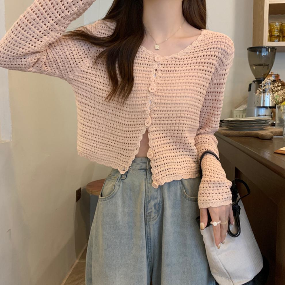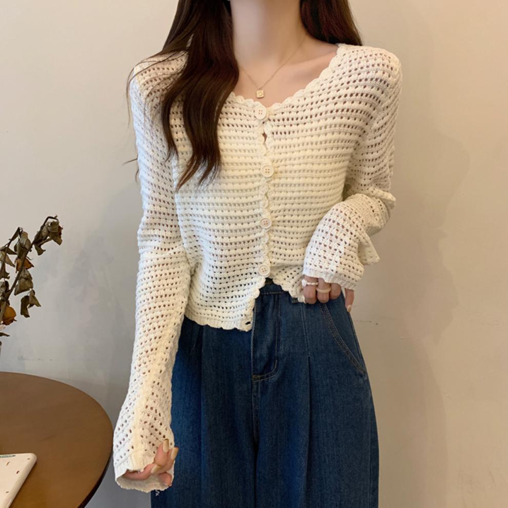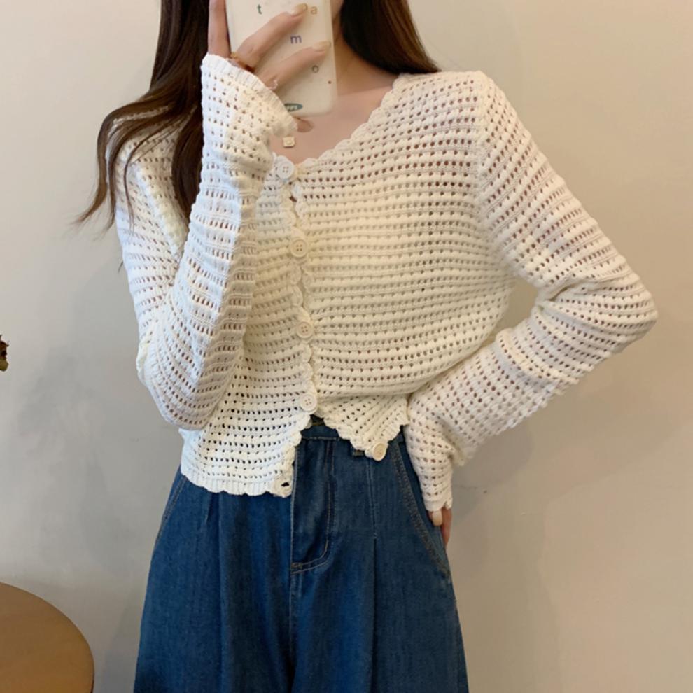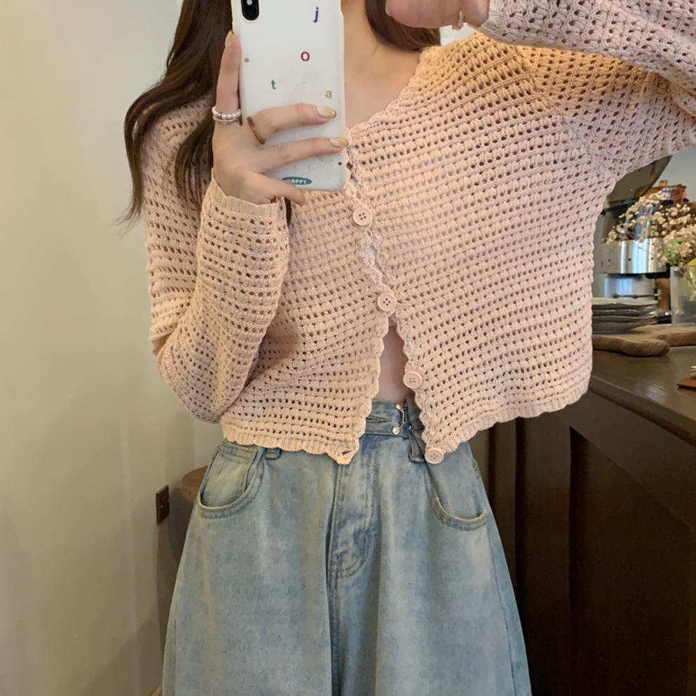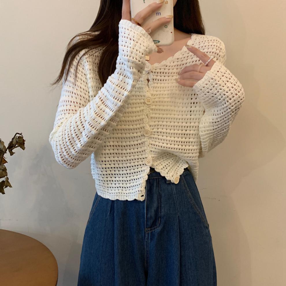 봄과 가을 한국식 느슨한 할로우 디자인 니트 카디건 탑 스웨터