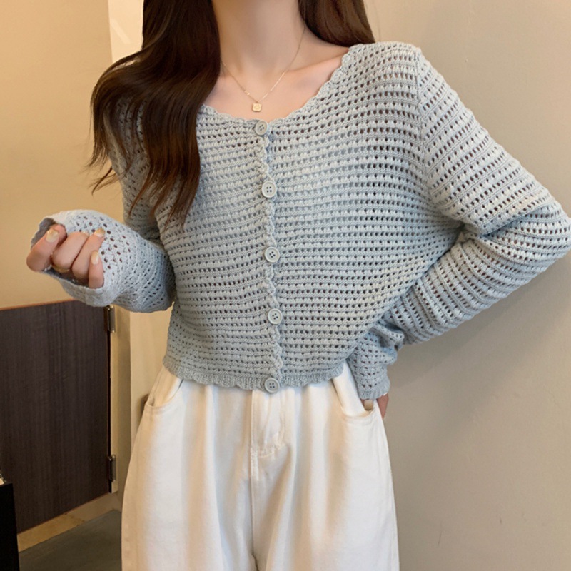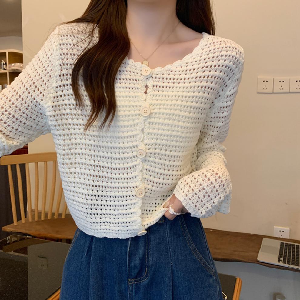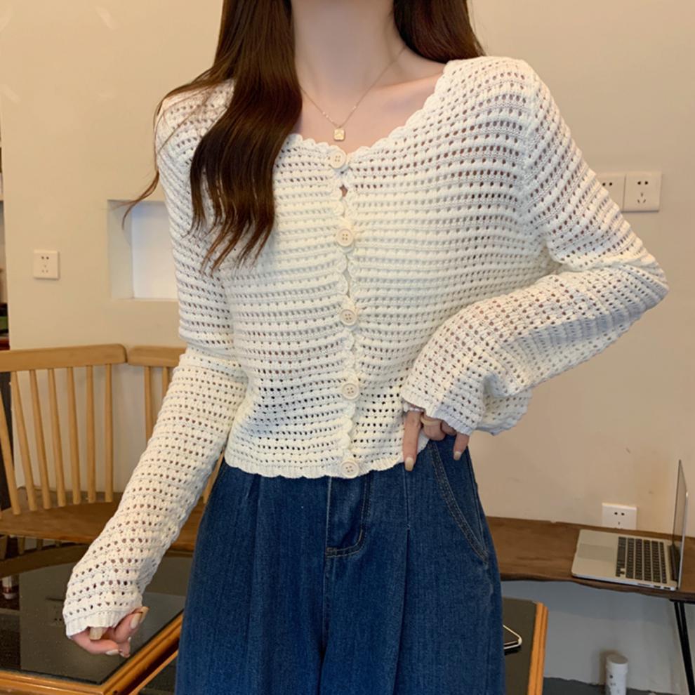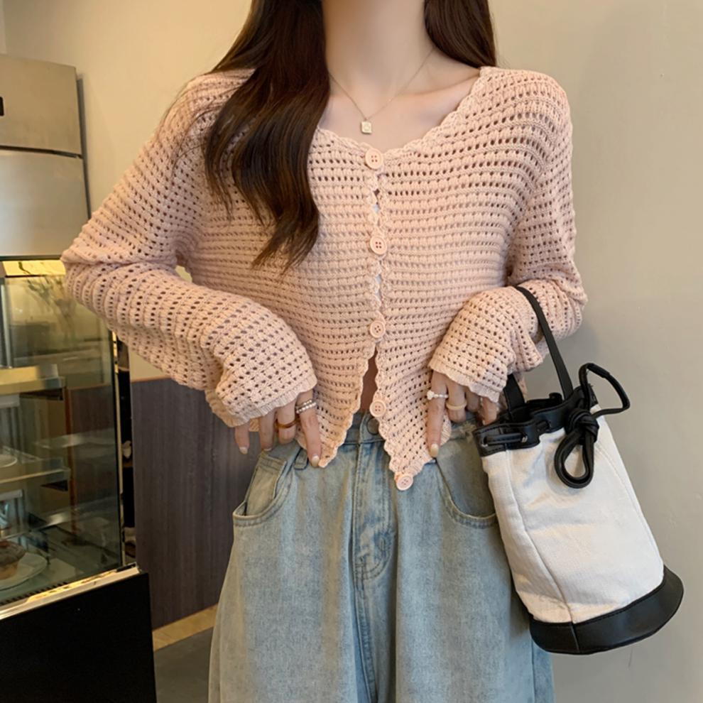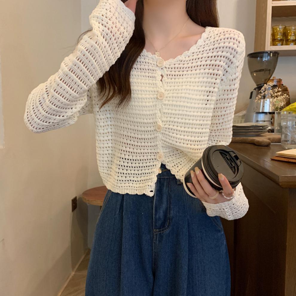 봄과 가을 한국식 느슨한 할로우 디자인 니트 카디건 탑 스웨터