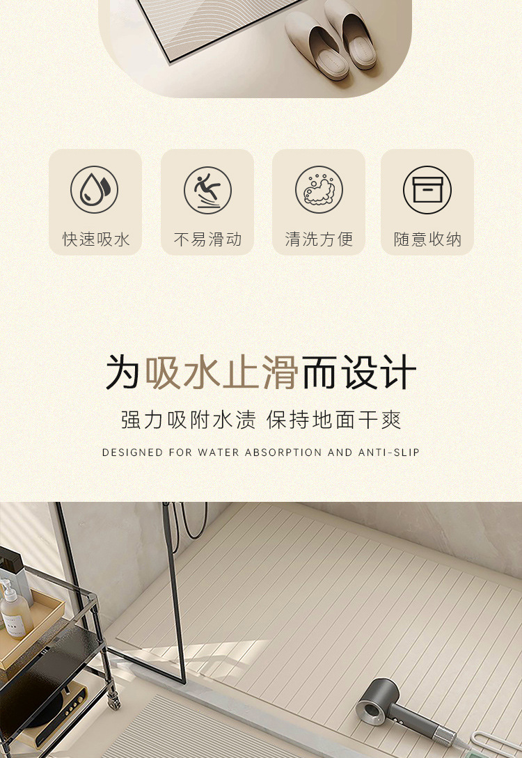 부드러운 Diatom 진흙 욕실 매트 욕실 화장실 문 빠른 건조 흡수성 발 매트 가정용 미끄럼 방지 입구 문 카펫