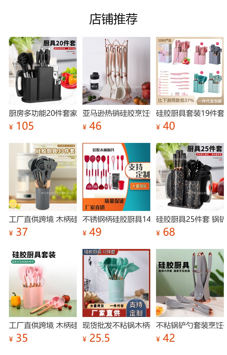 뜨거운 국경 나무 손잡이 실리콘 주방 용품 세트 칼 세트 19 조각 주방 요리 삽과 숟가락 컬러 칼 홀더 조합스토어 가기
