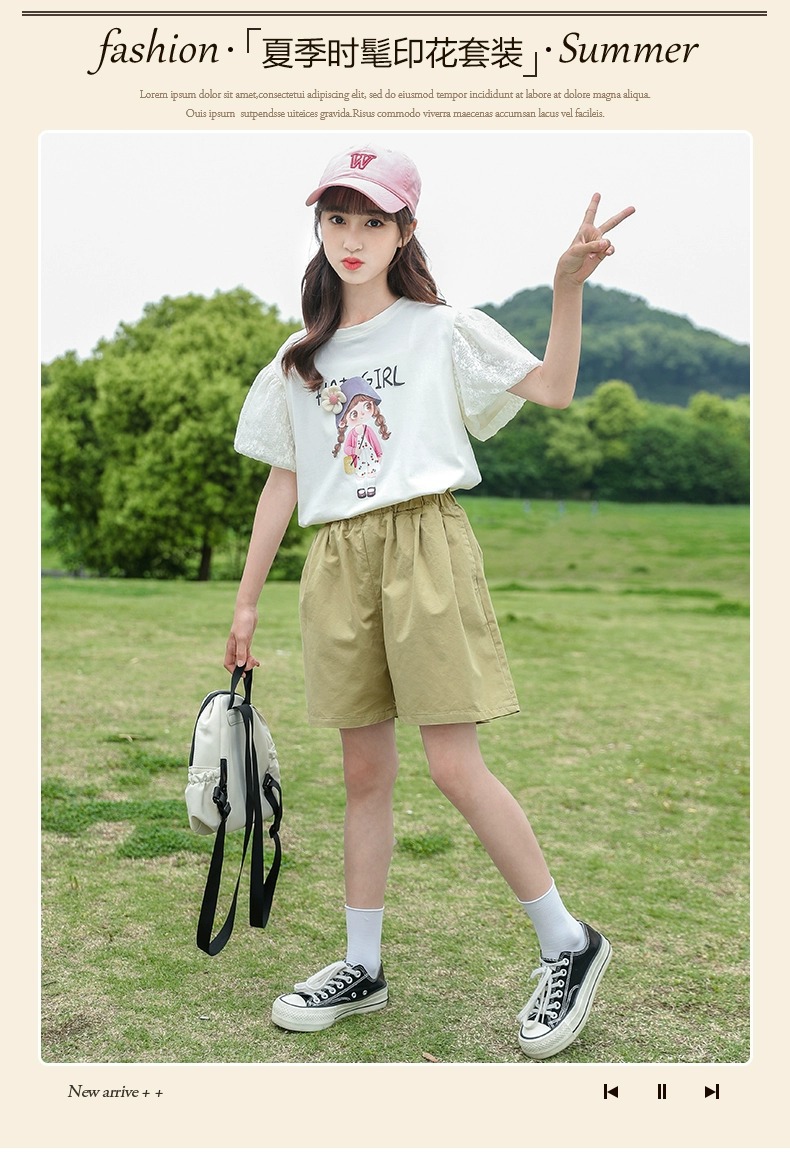 여자 여름 반바지 세트 2024 여름 반팔 티셔츠 소녀 면 얇은 느슨한 스포츠 캐주얼 세트스토어 가기