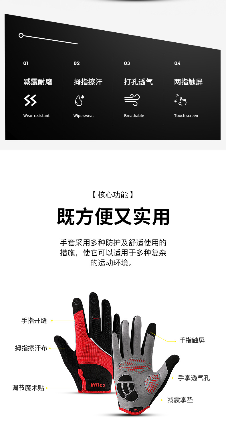 Vilico 새로운 봄과 여름 야외 스포츠 등산 장갑 내마모성 충격 흡수 착용 방지 터치 스크린 자전거 장갑