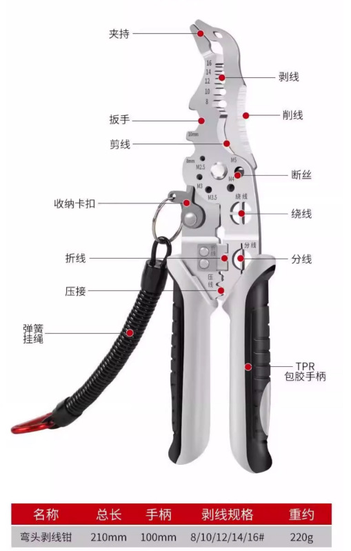 전기 기술자를위한 독일 산업 Panglong 다기능 휴대용 와이어 스트리핑 클램프