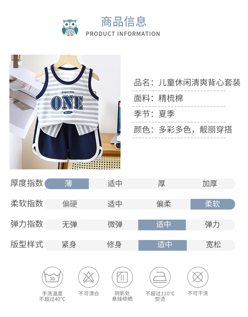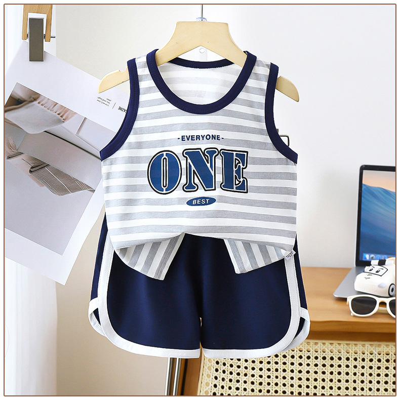 어린이 조끼 세트 면 여름 새 아기 민소매 옷 소년 반바지 소년 한국 의류 아동복