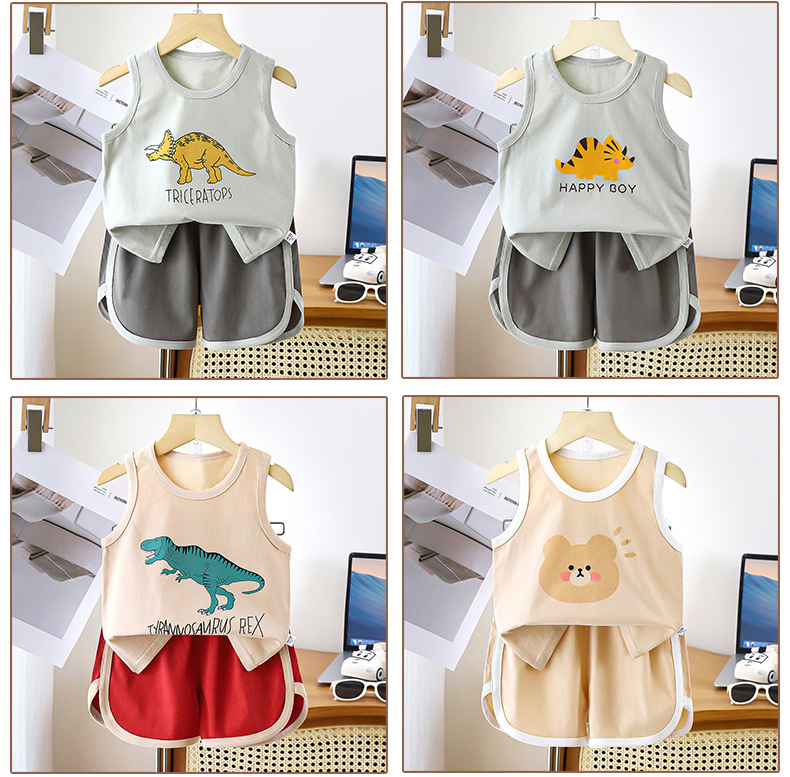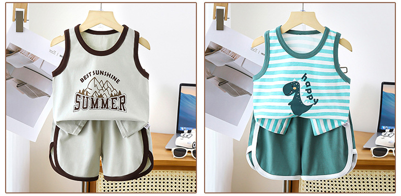 어린이 조끼 세트 면 여름 새 아기 민소매 옷 소년 반바지 소년 한국 의류 아동복스토어 가기
