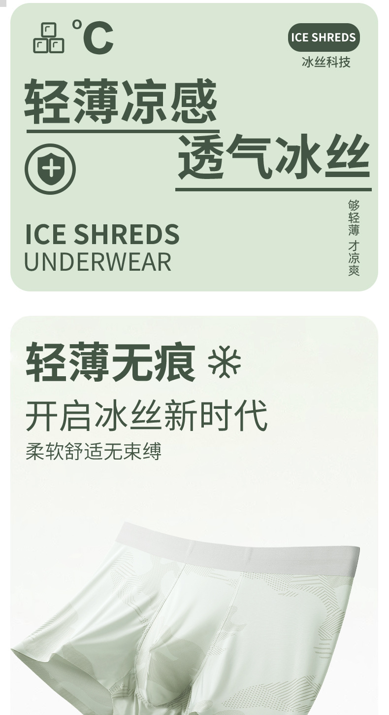 7A Bacteriostatic 여름 새로운 남성 속옷 아이스 실크 얇은 중간 허리 상자 시원하고 편안한 단색 소년 4 개 코너스토어 가기