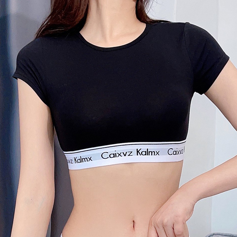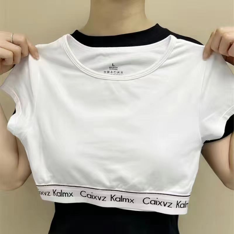 업그레이드 된 CaixvzKalmx 반팔 여성용 꽉 끼는 섹시한 티셔츠 순수 스타일 모리 스타일 아우터웨어 슬림 핏 러닝 벨트 패드스토어 가기