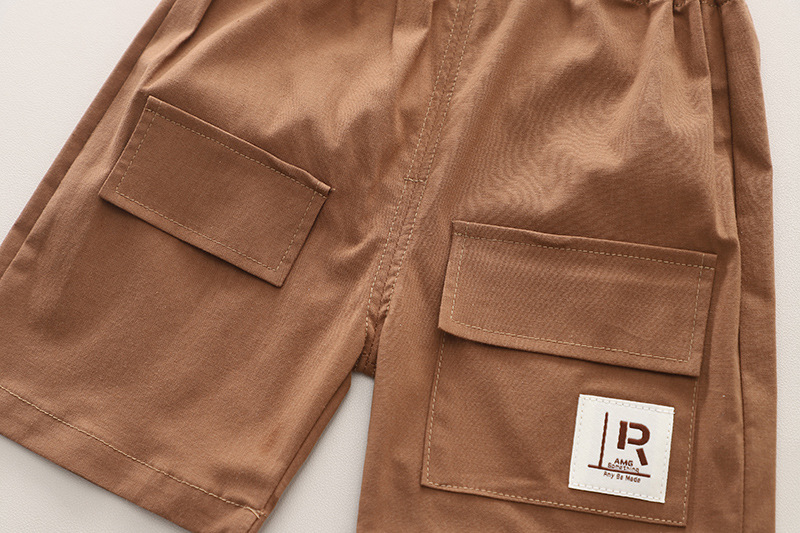 여름 소년 반팔 세트 여름 대외 무역 새로운 아기 모에 아기 전체 인쇄 곰 머리 작은 나무 반팔 세트