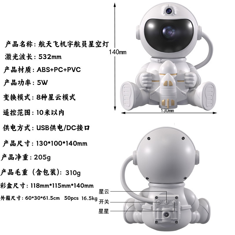 우주비행사 별이 빛나는 하늘 램프 로켓 우주비행선 우주비행사 프로젝션 램프 분위기 램프 레이저 램프 LED 별 램프
