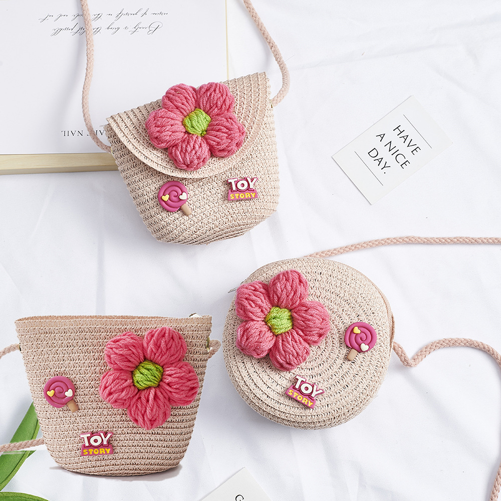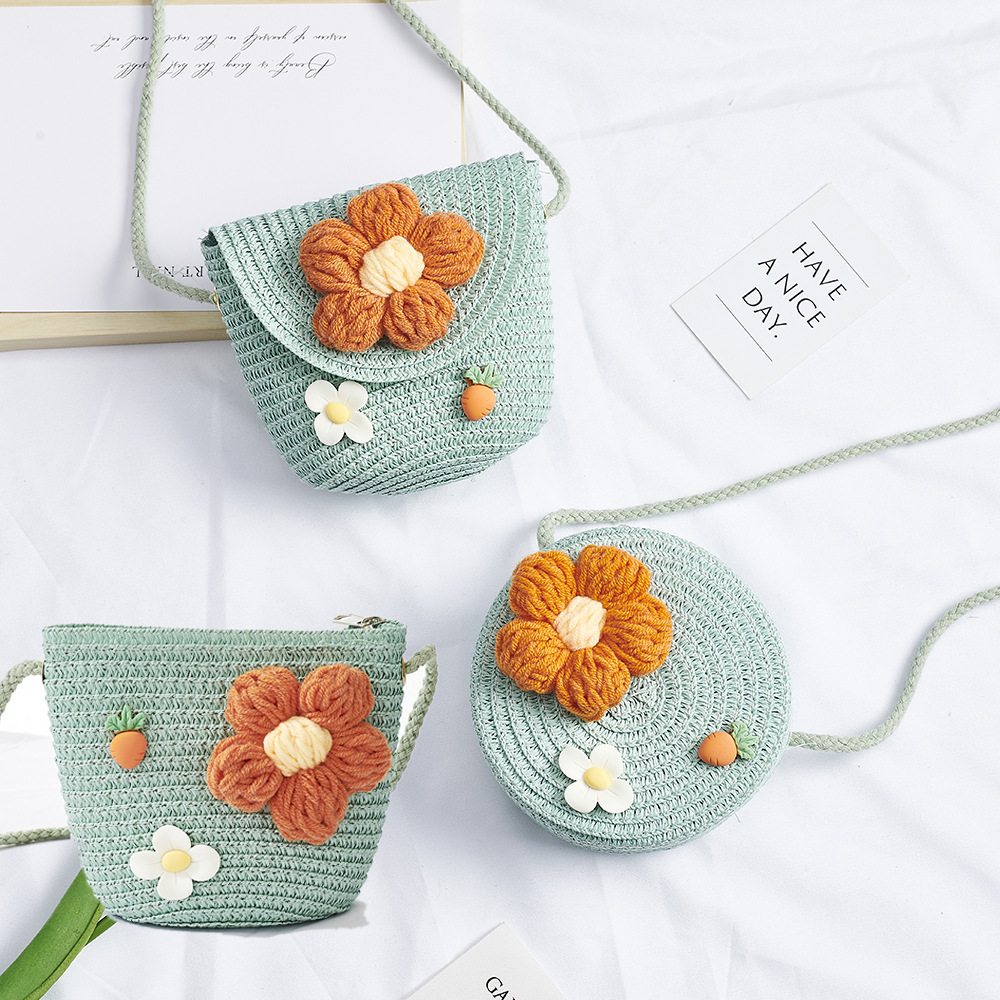 봄과 여름 새로운 어린이 밀짚 작은 가방 아기 크로스 바디 작은 둥근 가방 귀여운 밀짚 소녀 미니 작은 사첼
