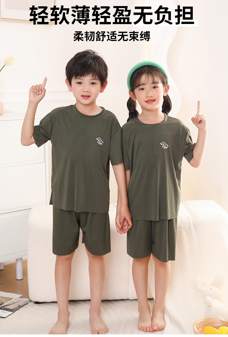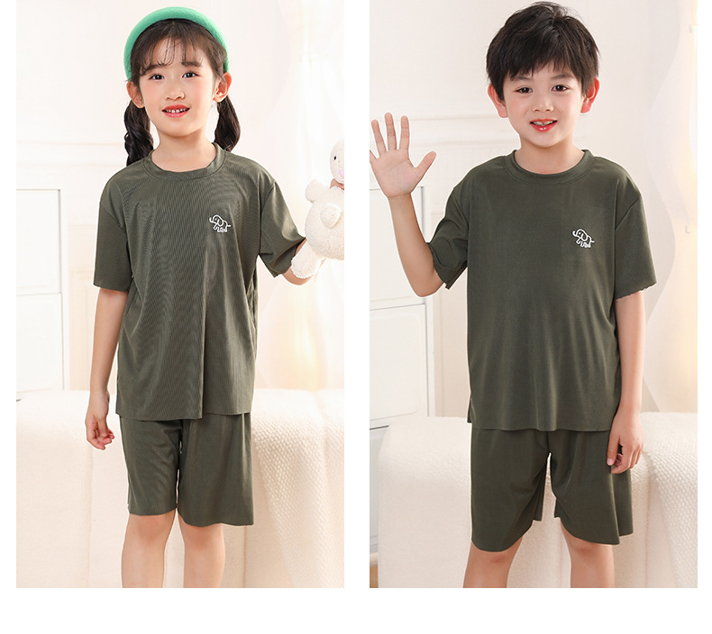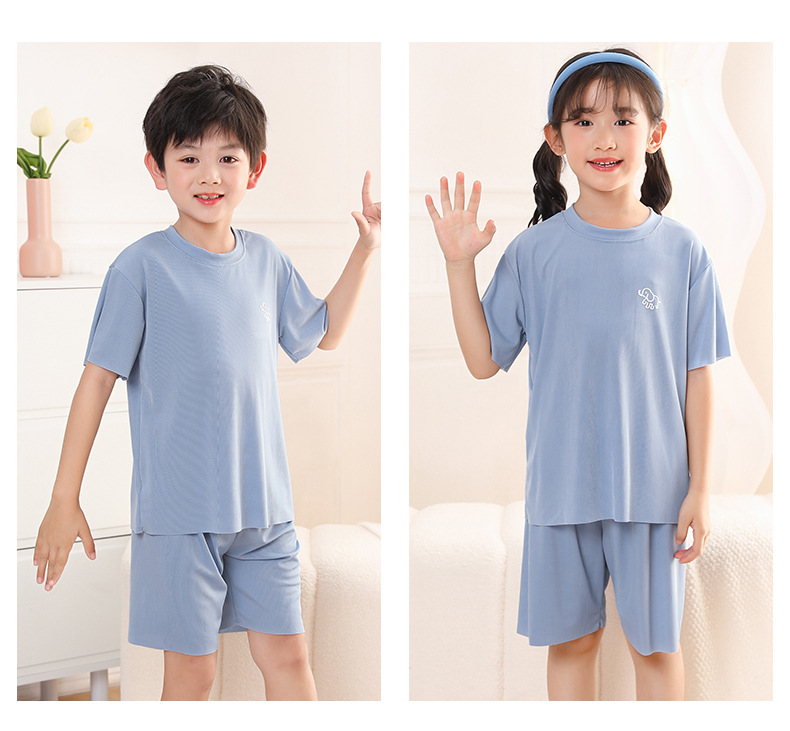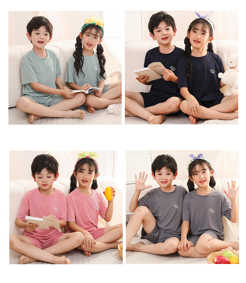 어린이 잠옷 여름 얇은 소년 아이스 실크 반팔 중견 어린이 · 소녀 여름 소년 · 여아 홈 세트스토어 가기