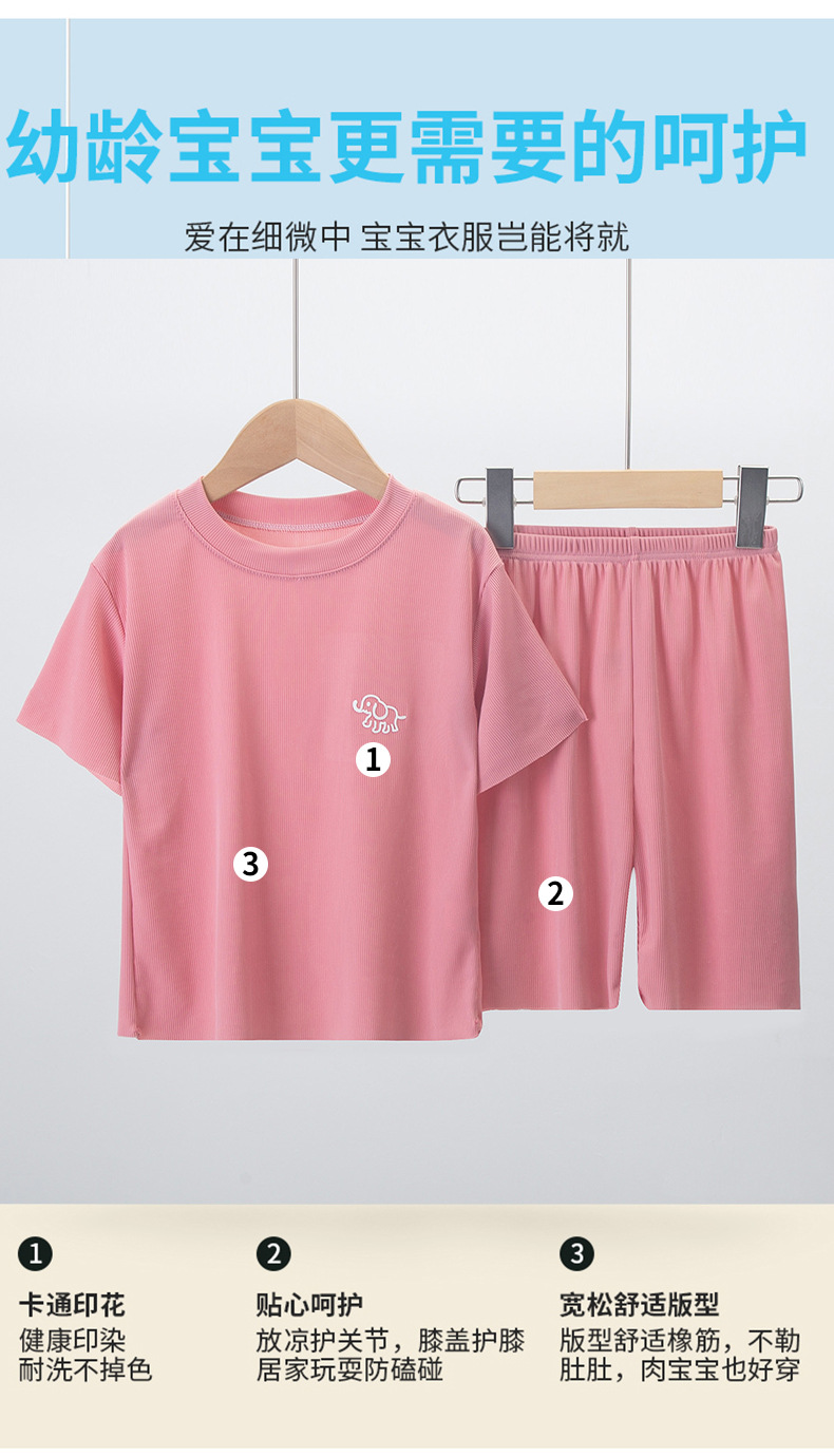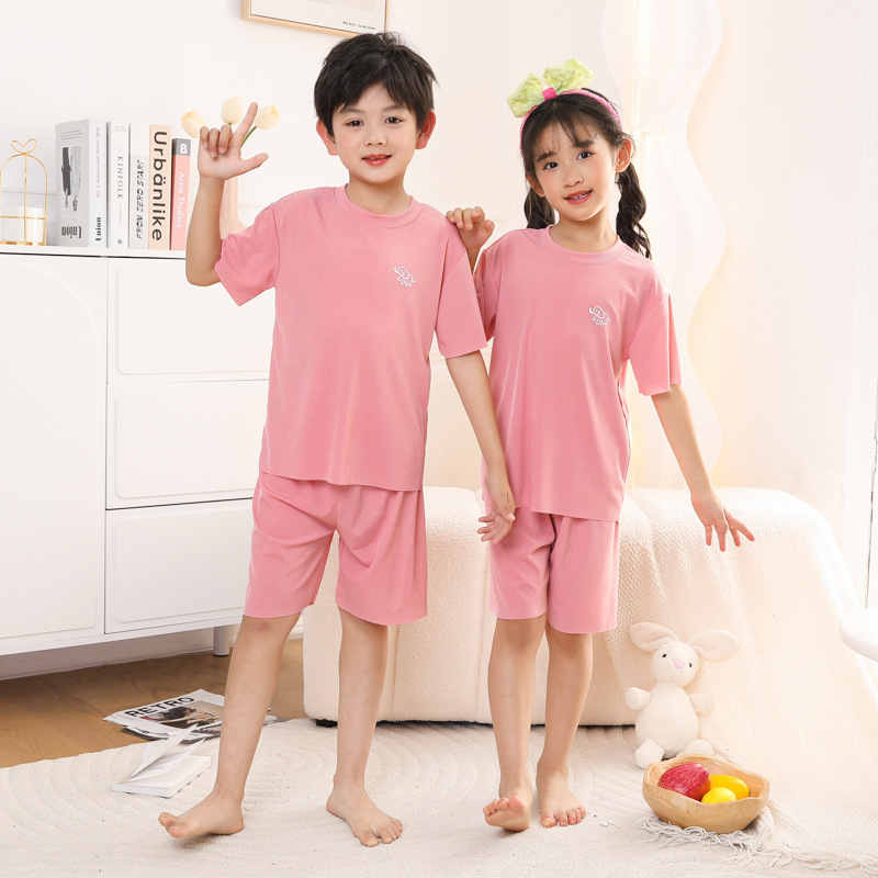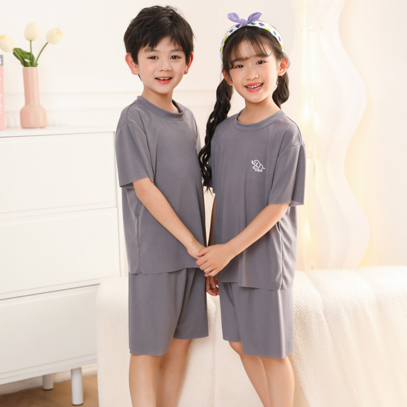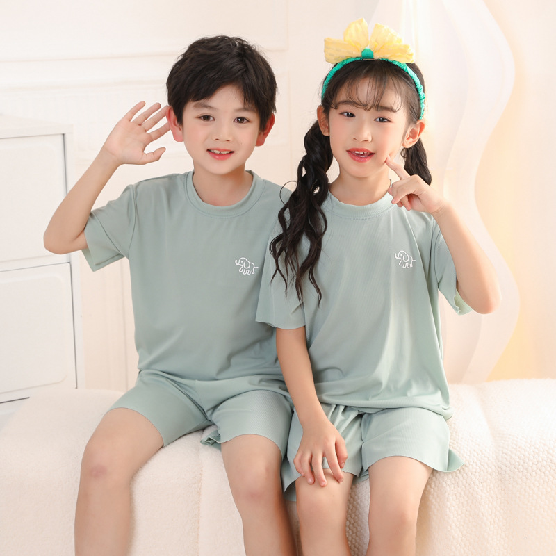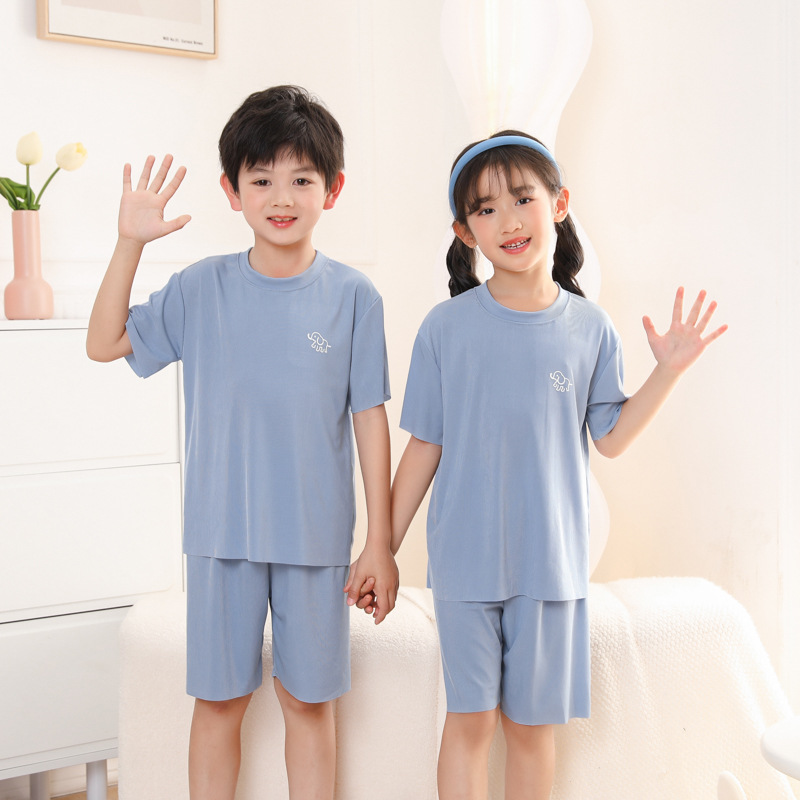 어린이 잠옷 여름 얇은 소년 아이스 실크 반팔 중견 어린이 · 소녀 여름 소년 · 여아 홈 세트