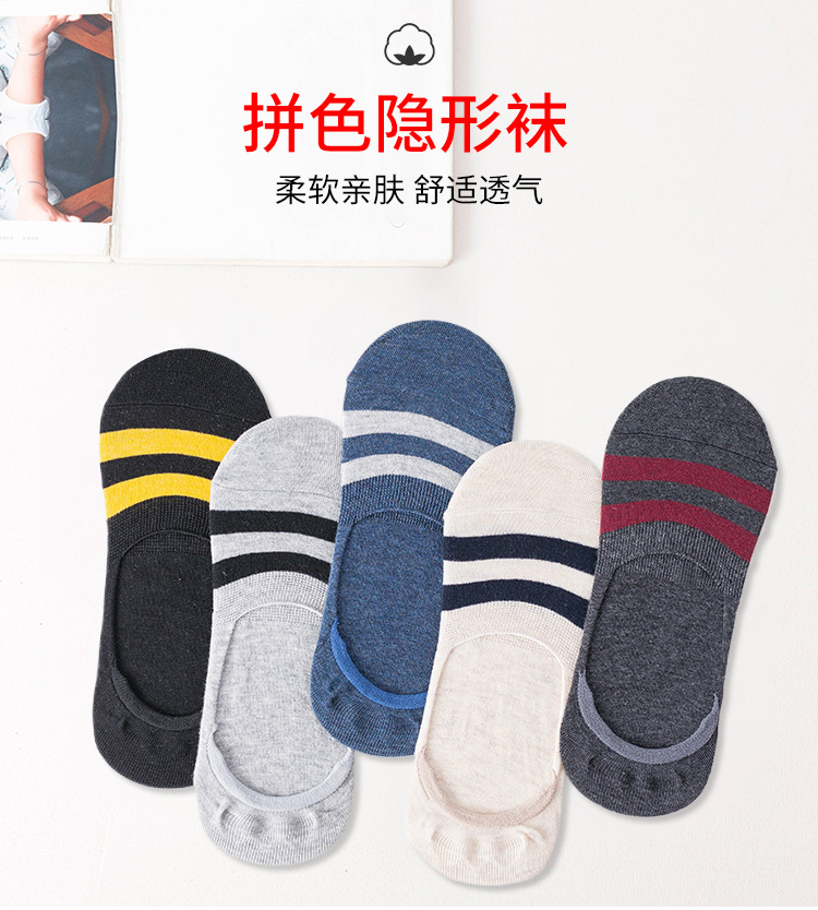 남성용 다용도 배색 인비저블 양말 봄 여름 얇은 통기성 보트 양말 미끄럼 방지 땀 흡수 면 양말 미끄럼 방지 디자인