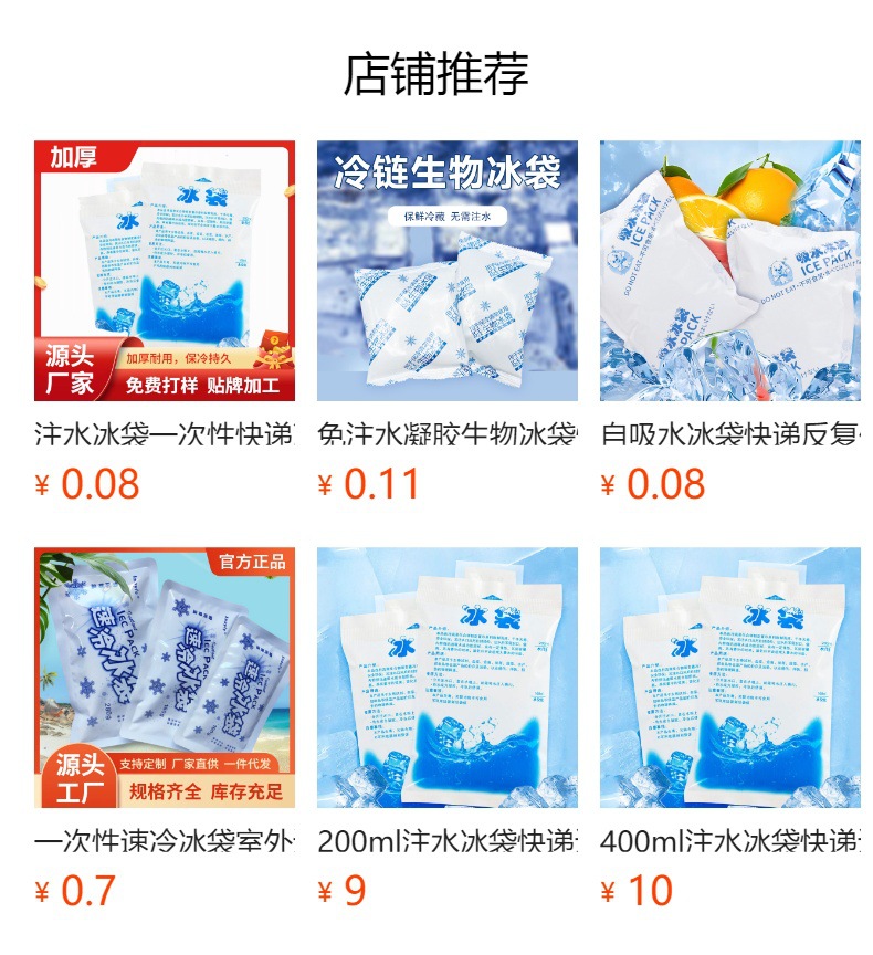 250g 생물학적 아이스백 물을 채우지 않아도 되는 젤 프리 신선도 유지백 해산물 및 과일 배송용 젤 아이스백스토어 가기