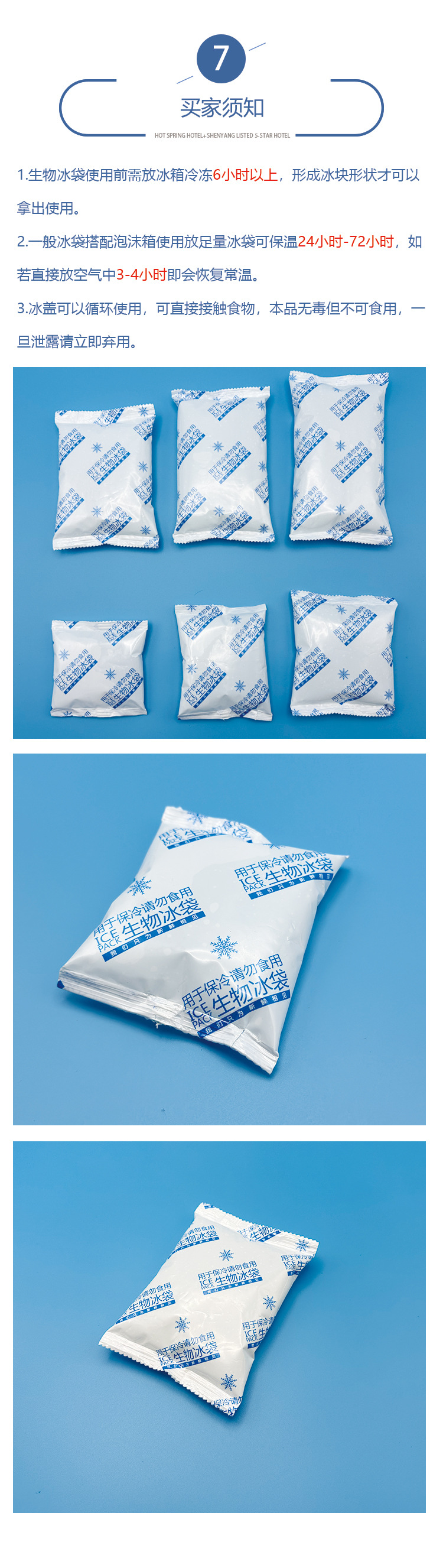 250g 생물학적 아이스백 물을 채우지 않아도 되는 젤 프리 신선도 유지백 해산물 및 과일 배송용 젤 아이스백