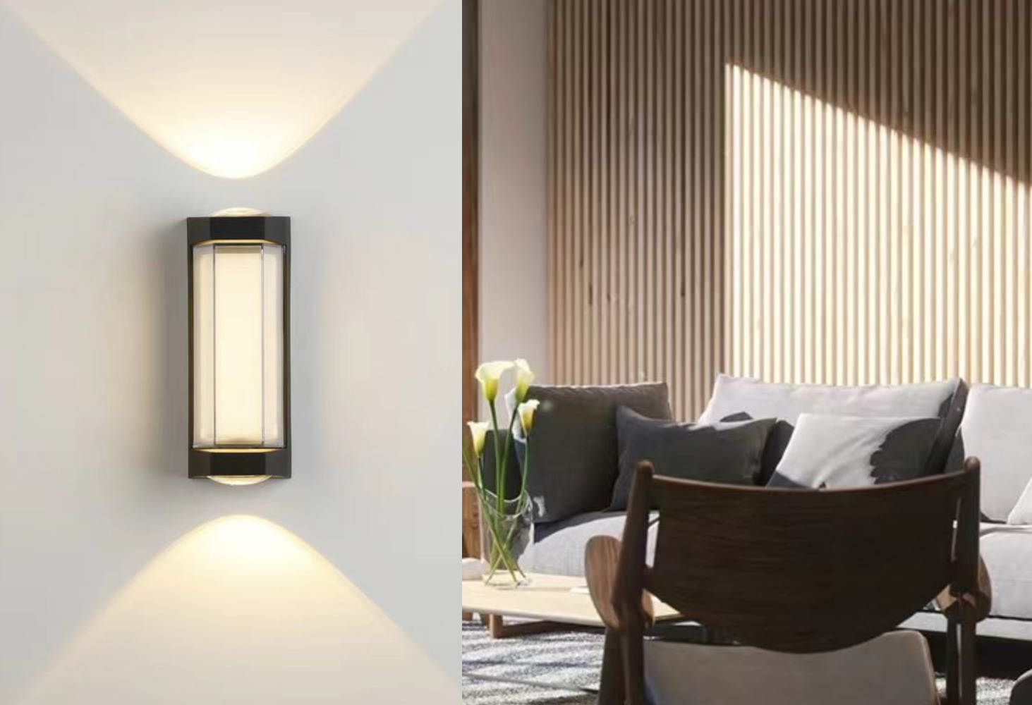 LED 방수 더블 레이어 PC 벽 램프 야외 실내 위아래로 단일 미니멀리스트 정원 호텔 발코니 게이트 가든