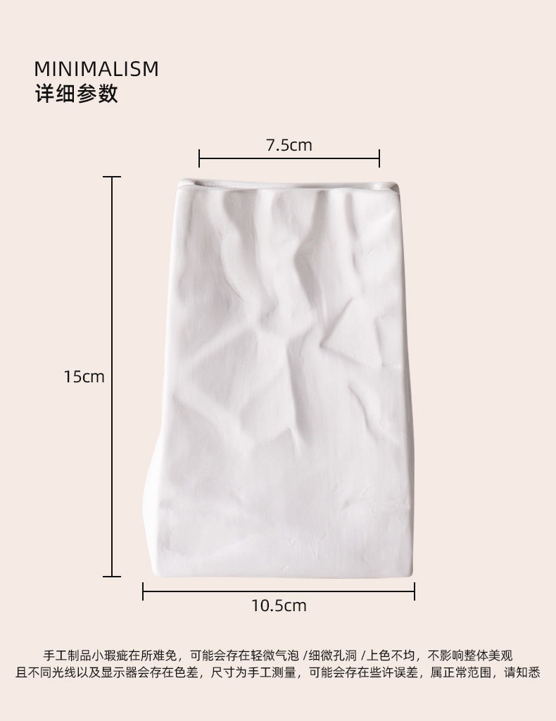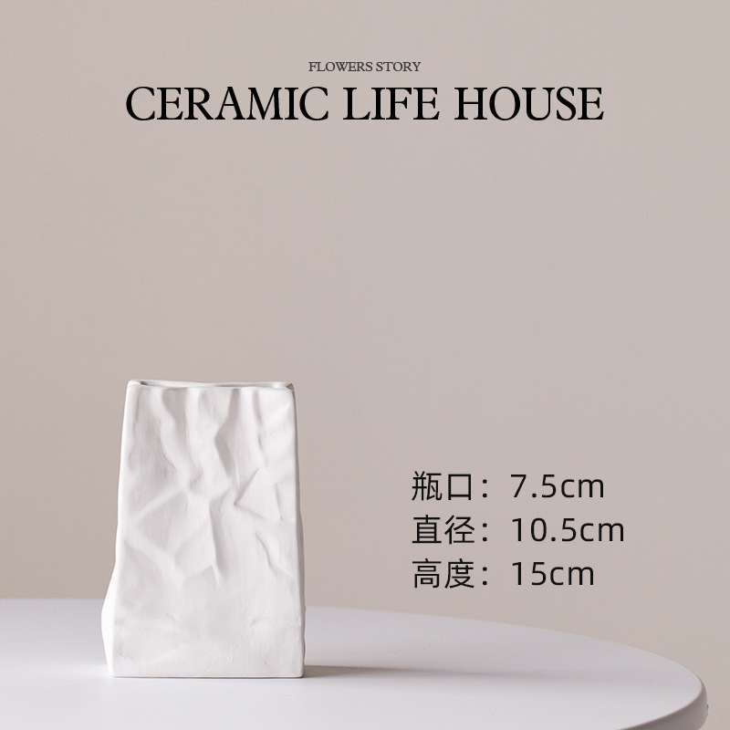 크리 에이 티브 기능 종이 봉투 세라믹 꽃병 거실 입구 장식품 라이트 럭셔리 꽃병 꽃꽂이 하이 엔드 시뮬레이션 꽃 용기