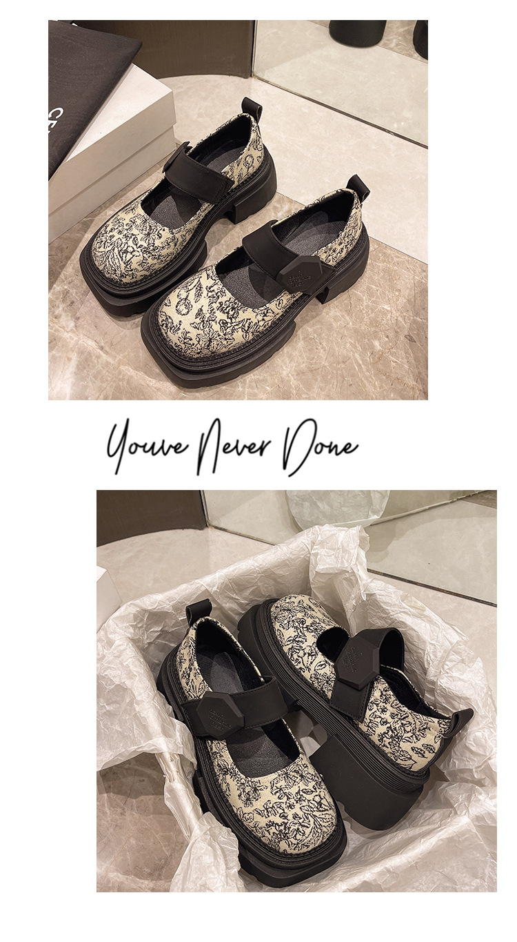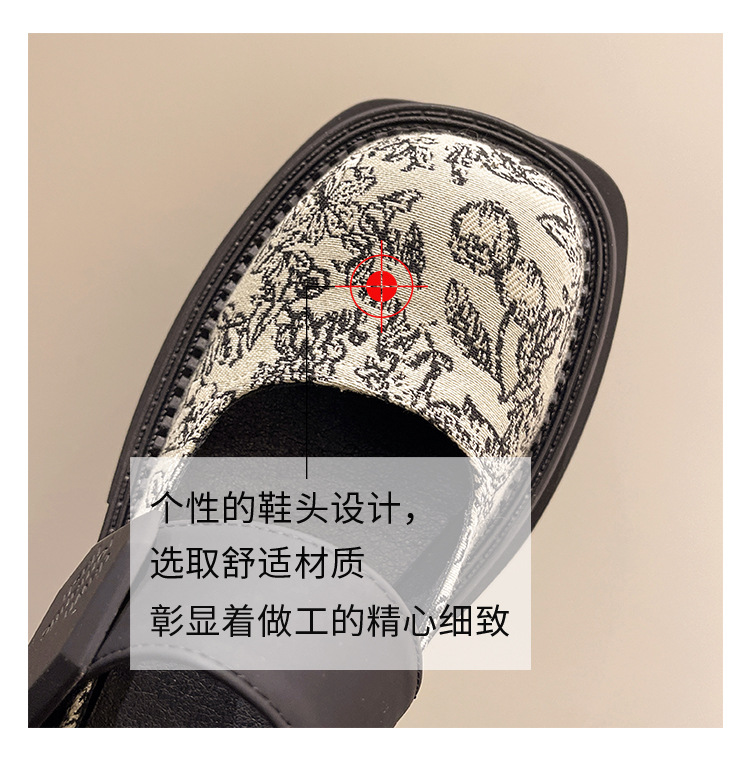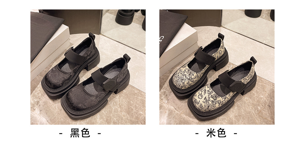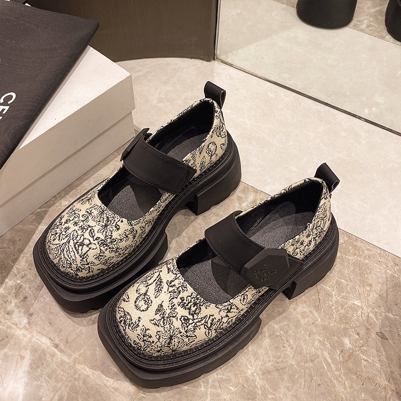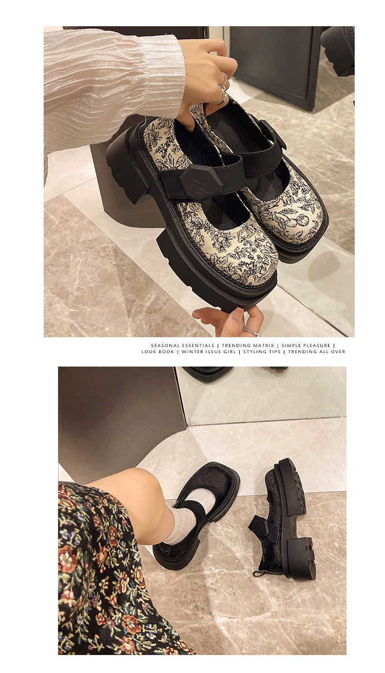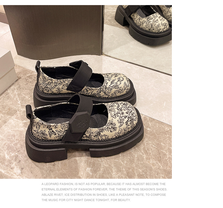Guofeng 새로운 중국 스타일 로퍼 여성의 2024 새로운 봄과 가을 청키 힐로 인쇄 된 단층 신발 두꺼운 밑창 메리 제인 가죽 신발스토어 가기