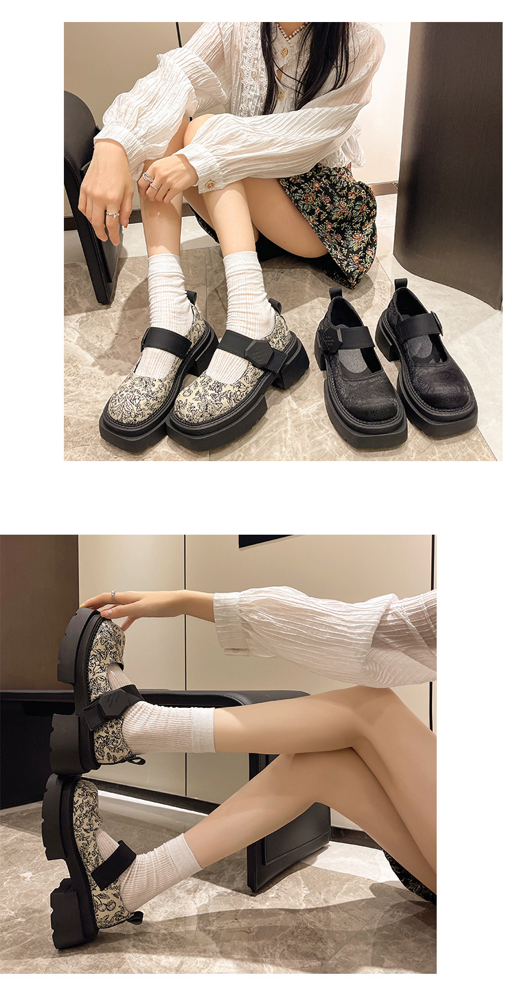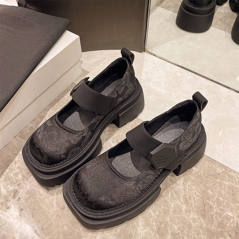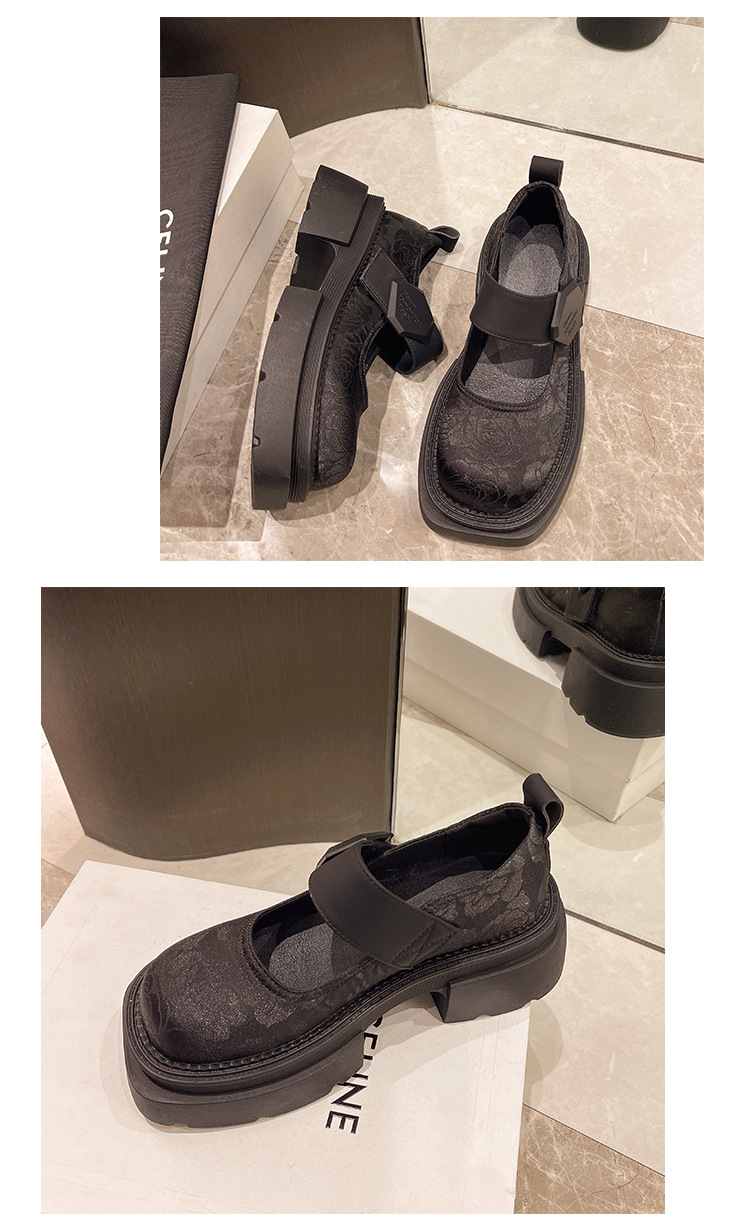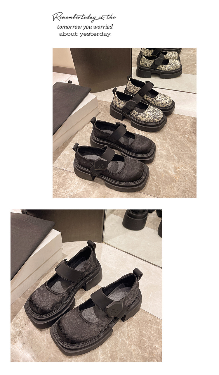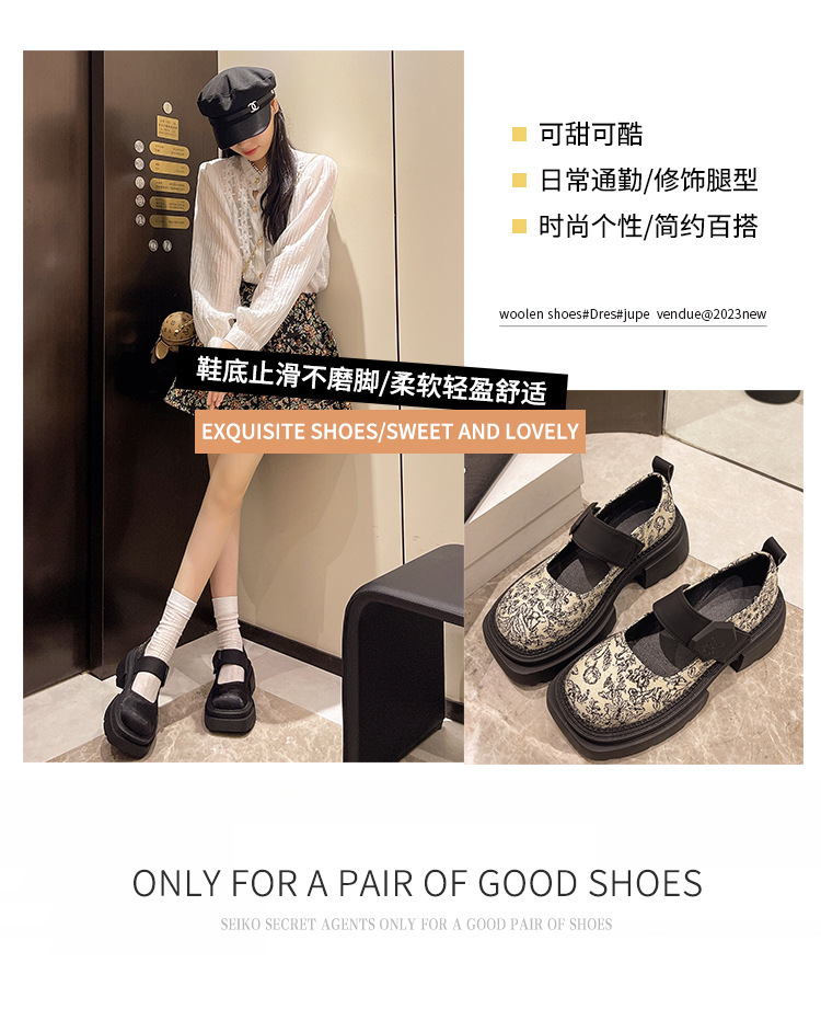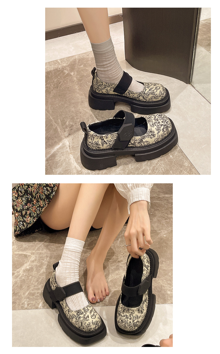 Guofeng 새로운 중국 스타일 로퍼 여성의 2024 새로운 봄과 가을 청키 힐로 인쇄 된 단층 신발 두꺼운 밑창 메리 제인 가죽 신발스토어 가기