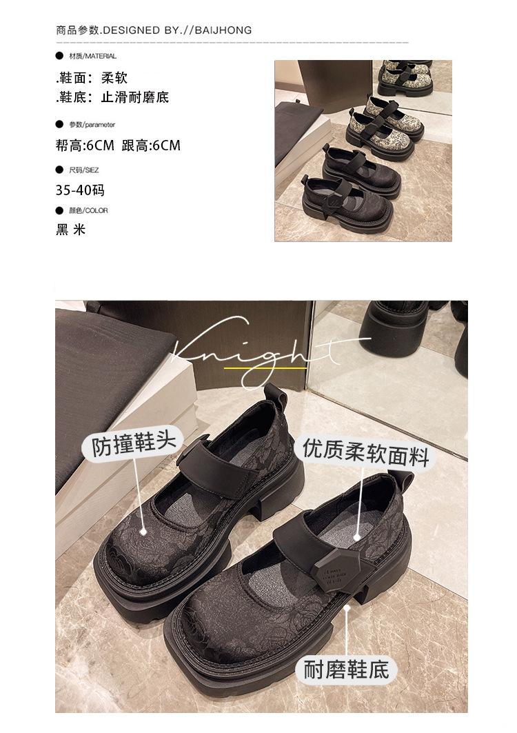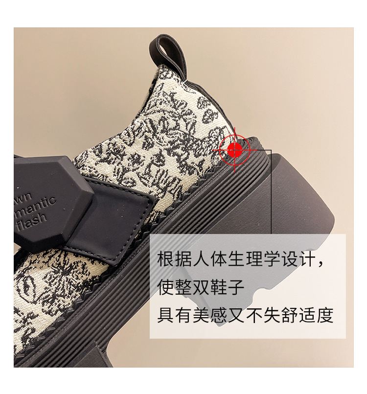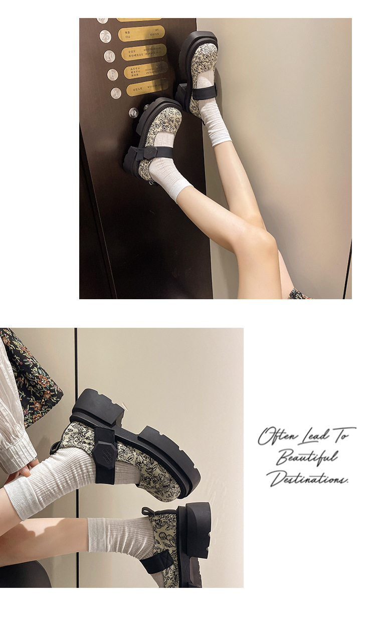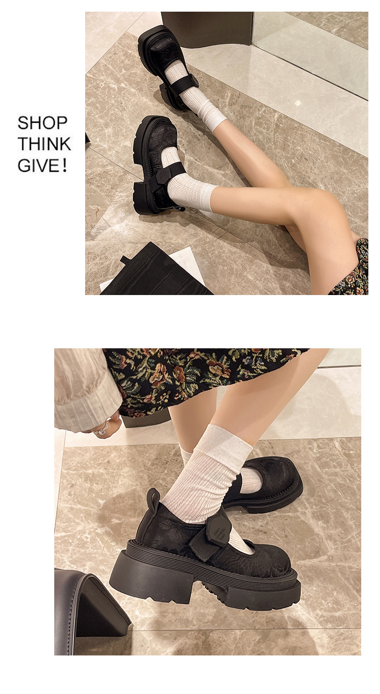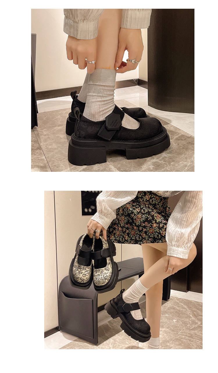Guofeng 새로운 중국 스타일 로퍼 여성의 2024 새로운 봄과 가을 청키 힐로 인쇄 된 단층 신발 두꺼운 밑창 메리 제인 가죽 신발스토어 가기